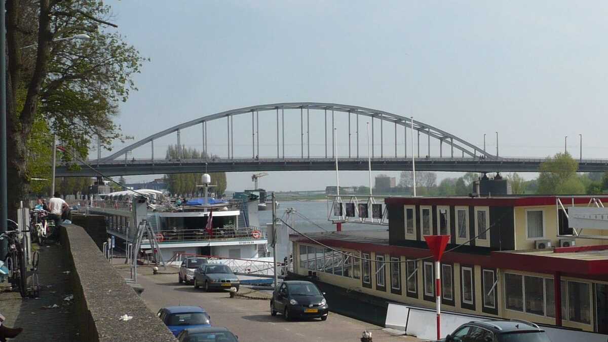 Coborîm din troleu la Sint Walburg Basiliek și apoi o luăm la pas spre Rijnkade, faleza Rinului, de unde Fons ne arată cel mai celebru pod din Olanda, pe care vom avea onoarea de a-l traversa spre stadionul/sala (arena are acoperiș și podea retractabile) Gelredome, locul concertului de diseară. Celebru pentru că povestea lui Frostbrug – botezat în cinstea locotenent-colonelului englez John Frost, comandantul operațiunii aliate “Market Garden“ din septembrie 1944, în care trupe engleze și poloneze au primit misiunea de a captura podul aflat sub control german, dar au fost parașutați prea departe de obiectiv – este spusă in extenso de filmul A Bridge Too Far, realizat în 1977.