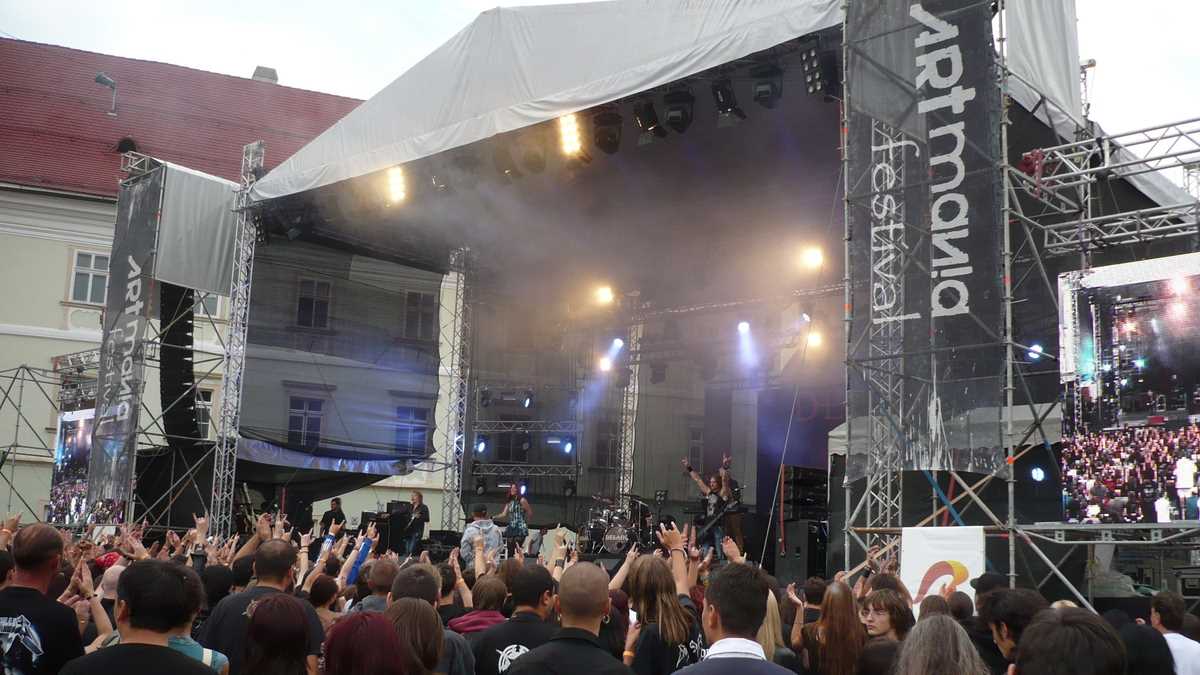 Vineri seară, mă învîrteam fără țintă prin mulțimea de pletoși și pletoase din Piața Mare a Sibiului, cu o bere în mînă. Ce spuneți? Nu, nu participam la mitingul coafezelor bețive: eram prezent la a șaptea ediție a festivalului Artmania, la care revista noastră a fost partener media. Ca să vă faceți o idee cam între ce țărmuri se zbuciuma marea asta de rockeri, să facem un ocol virtual al pieței, de la scenă spre dreapta: tarabe cu tricouri (70-85 lei), ghișee de spart portofelul în jetoane (5 lei/buc.), dozatoare de bere (Holsten nefiltrată și Tuborg – 1 jeton, Guinness – 2 jetoane), standuri cu Cațavencii, Dilema veche, Historia (gratis), un chel bărbos îmbrăcat în tatuaje, bude la care coada era la fel de mare ca la dozator, cort Harley-Davidson cu expoziție de motoare, o mamă cu junior în căruț și înapoi la scenă, pe care s-au urcat deja cei de la Trail of Tears, care abia ne acordează the ears.