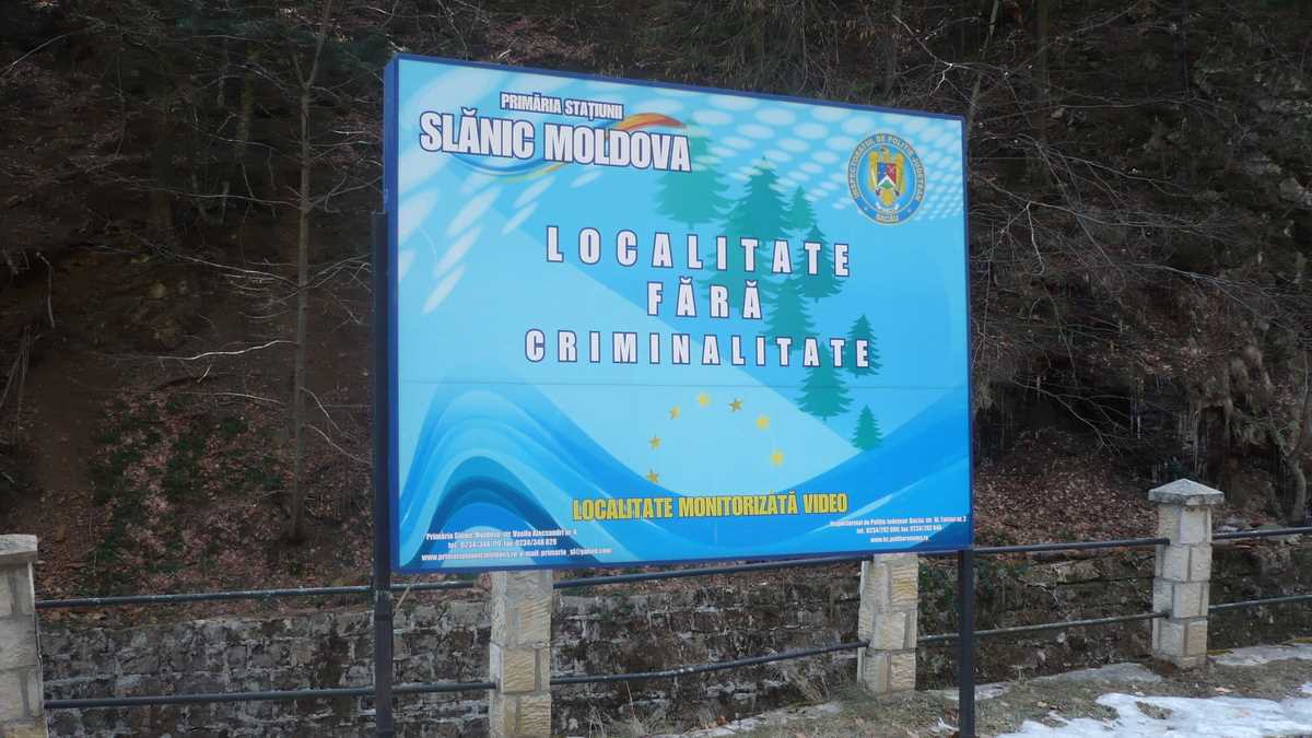 Cuvintele astea, dintr-un sfat al medicului imaginar (și sfatul, și medicul), îmi sunau în cap sîmbătă, pe la prînz, în timp ce mă plimbam pe aleile parcului din Slănic Moldova. Zi rece de martie; soare subțire, vînt gros. Curățenie. Liniște. Nimeni. Și cînd spun nimeni, gîndiți-vă la atmosfera unui film postapocaliptic prost, în care un virus ucigaș a ras instantaneu toată populația din oraș: nici măcar vreun zombie (sau, hai, maidanez) nu mișca în cadru. Parcă eram într-o farsă TV și locuitorii/turiștii se ascunseseră cu toții, așteptînd momentul potrivit ca să-mi sară în față: Sărpraiiz! Senzația asta s-a accentuat cînd am dat de panoul pe care se postase un mesaj liniștitor: “Slănic Moldova – localitate fără criminalitate, monitorizată video”. Semnat, Primăria și Poliția. Aha, deci, cum ar veni, nu e nimeni acasă, dar ai grijă cum te porți.