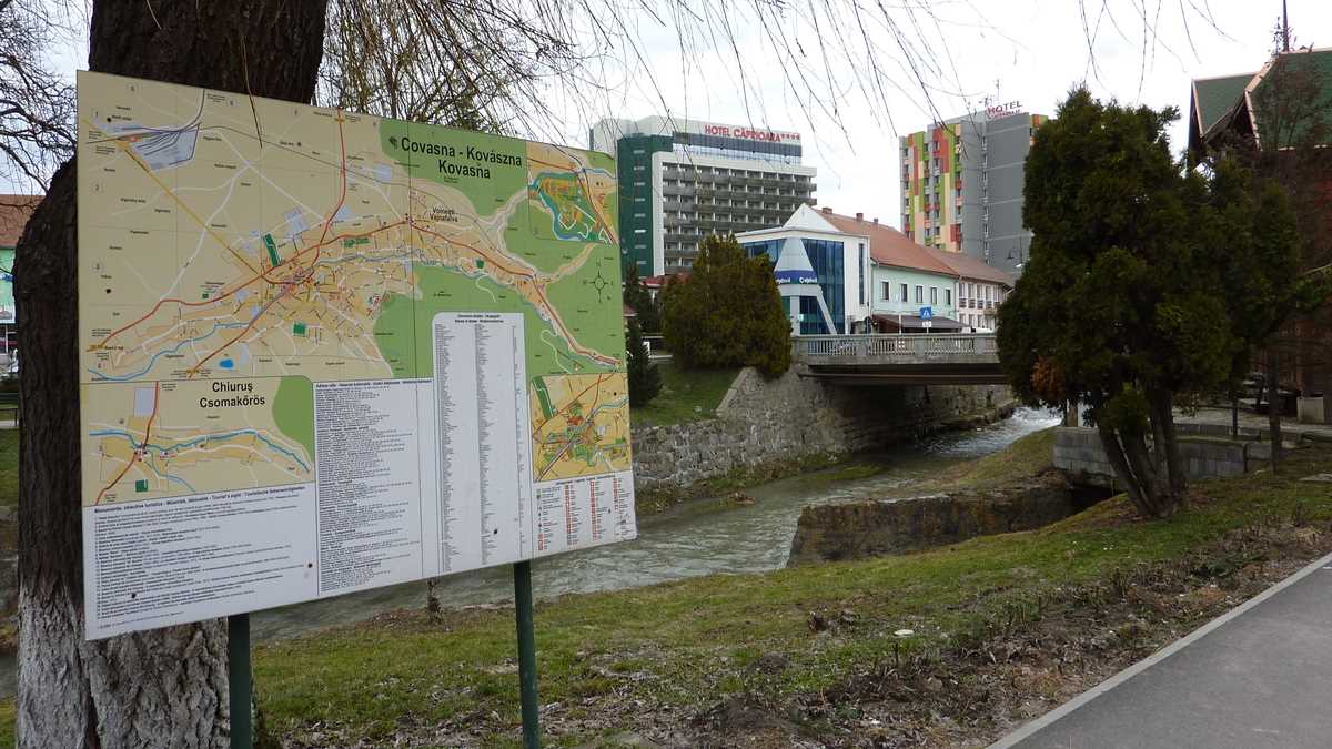 Destinație turistică pour le fins connaisseurs, pentru cei cu adevărat hotărîți să ajungă acolo, Covasna apare în calea drumeților de pe DN 11 doar sub formă de indicator, fiind un cul-de-sac. În care intri – de exemplu, venind dinspre Onești, după ce treci de sacii de cartofi și pîinea de casă din fața porților din Brețcu – în Tîrgu Secuiesc: pe așa-zisa centură, în loc s-o ții drept, spre Brașov, faci stînga la prima intersecție de după sensul giratoriu și, alți douăzeci și ceva de kilometri de șosea modernizată mai tîrziu, ai ajuns.