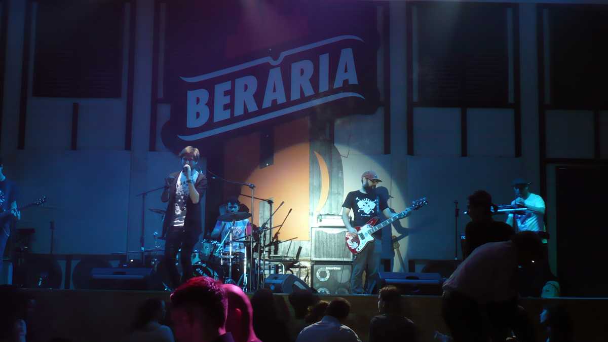 Pentru cine încă nu știe, Berăria H, care se laudă în panotajul agresiv de prin oraș că ar fi cea mai mare beer hall est-europeană, e fostul Pavilion H al complexului Romexpo, găsibil, încă de pe vremea cînd expunea utilajele grele ale glorioasei industrii sovietice, aproape de poarta de acces în Herăstrău dinspre Casa Presei, fix peste drum de altă cîrciumă cu impresii, Hard Rock Cafe. Intrarea principală (mai există una în spate, pentru accesul din parcarea de lîngă lac) îți prilejuiește, în zece secunde, două chestii contrare: apariția în incintă într-un mare fel, coborînd o scară ca în Titanic, și dispariția, la capătul ei, în anonimatul mulțimii, într-o imensă discotecă cu miros de mîncare. Sau, dacă preferați, invers, într-o cantină uriașă în care muzica bubuie la nivel de hipoacuzici. Nu poți schimba două vorbe cu oamenii de lîngă tine fără să urli ca pe un stadion (plin); cînd răgușești, singurul mod de comunicare cu ceilalți sînt mesajele mimate sau trimise pe telefon. Și cînd te gîndești (pentru că, dacă vorbești, nu te aude nimeni) că aici se organizează și concerte, deși sala are acustica unei hale de uzină, instrumentele, date la volum maxim, sunînd ca niște forje… Dar asta nu pare a deranja deloc asistența: pe scenă, trupele prestează continuu, ca un tonomat, pentru dansatorii de pe mese, în timp ce restul lumii stă pe scaun și înfulecă indiferentă.