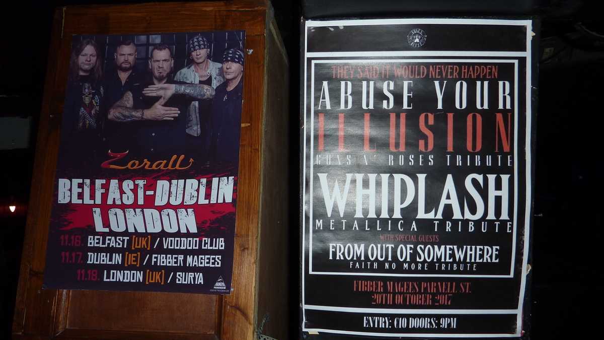 De ce: Nu închisesem bine ușa în spatele meu și abia ne acomodam cu locul, cînd un tip vine spre noi, cu niște bilete în mînă. Vrea cîte zece euro de om, ca să nu ne dea afară, dar, dacă rămînem, surpriză, de banii ăștia, o să asistăm la concertele From Out of Somewhere, Abuse Your Illusion și Whiplash, trupe tribut Faith No More, Guns N’ Roses și, respectiv, Metallica. Ca vechi fani ai lui Hetfield & co, nici că se putea să nimerim mai bine: fără vreo consultare cu ceilalți, am percutat primul și-am plătit cu cardul pentru toți trei.