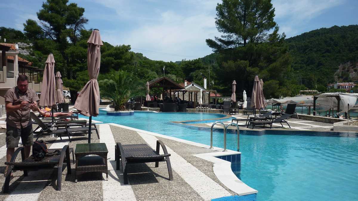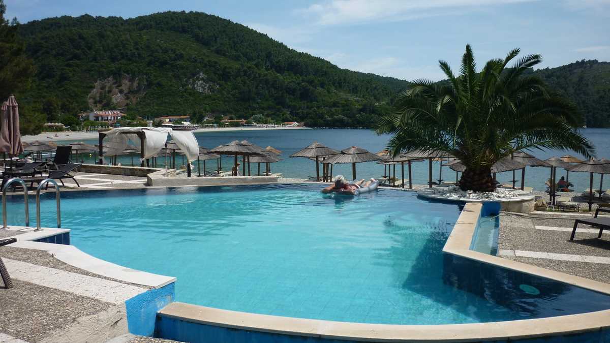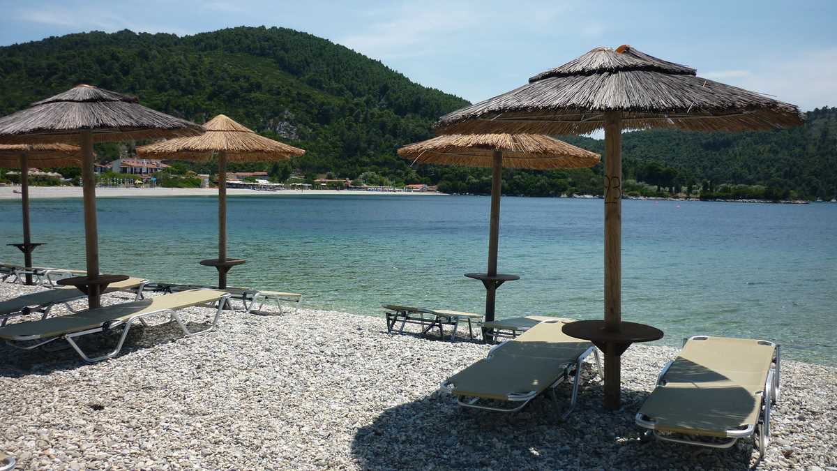 De fapt, știu: pentru că ambientul ăla se potrivește perfect visurilor de evadare din cotidianul gri al orașului. La o aruncătură de șlap de șezlongurile și umbrelele plajei golfulețului Panormos de la Marea Egee, Mojito Beach Bar e o construcție fără pereți – doar un acoperiș din lemn peste rafturile cu sticle plasate pe mijloc, între mesele dispuse de o parte și de alta a tejghelei, pe postamentul de scîndură ca o scenă. O versiune upgradată a barului-terasă de la Gura Portiței, dacă-l știți, înconjurat de pini, nu de sălcii, mai aproape de mare și mai puțin rustic, dar cu prețuri asemănătoare. (Măricele. Chiar dacă, geografic, complexul turistic de la Portița nu e situat pe o insulă, datorită accesului dificil, exclusiv pe apă, practică aceleași tarife de loc izolat ca și Skopelos. În plus, firma care-l administrează are poziție de monopol pe piața turistică locală; deci, domnule client, astea-s prețurile: dacă nu-ți convine cît costă berea, ești liber să traversezi lacul Golovița spre cea mai apropiată cîrciumă din Jurilovca.) Sau, dacă vă e mai la îndemînă un termen de comparație bucureștean, imaginați-vă că terasa Argentin din Centrul Vechi ar avea, în loc de parcagii, semănați pe cîteva zeci de metri distanță, pînă în bulevard, oameni în slip care se plimbă pe trotuar, pardon, pe plajă, cu un pahar de mojito în mînă.