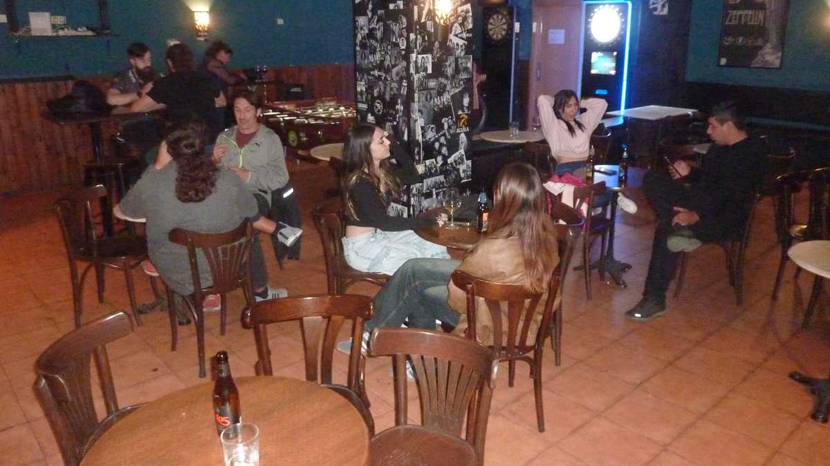 Nu prea te întîlnești cu străini aici, cel mult cu vreun expat care și-a găsit chirie în zonă, pentru că e destul de departe de zona în care circulă, năuci, turiștii: pe bulevardul Blasco Ibáñez, la parterul unui bloc relativ nou, genul celor bucureștene construite pentru nomenclaturiști, la Fîntîni. Miniterasă de trei mese, afară, în lateral, la intrarea în gangul spre incinta cvartalului; spațiu limitat de tejgheaua barului, întinsă în holul spre singura sală a localului, înăuntru. Pentru o marți seară de noiembrie, e suficient de animat. Ambianță plăcută, atmosferă de pub studențesc: lume tînără care bea, perechi, pe la mese sau joacă darts, biliard sau fussbal. Pe lîngă riff-urile din boxe, specificul de bar rock îl dau decorurile: chitara și vinilurile atîrnate pe peretele în care s-a decupat ușa toaletei și pozele alb-negru ale unor trupe clasice, pe stîlpul central, pilon de rezistență al clădirii, panotat și cu momente-amintire din viața barului care servește de zece ani comunitatea rock a cartierului.