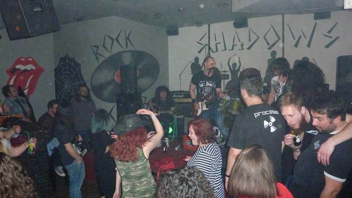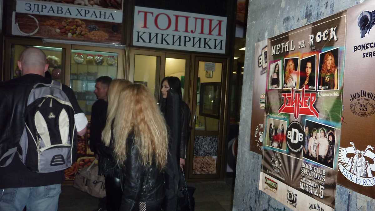 Evenimentul, botezat Metal vs. Rock, s-a consumat sîmbătă, 25 martie, seara tîrziu, după orele 23, în clubul Rock Shadows de la etajul imensei clădiri în care își au sediul gara și autogara orașului. Un club scumpuț – dacă socotim că o bere locală Skopsko, la 330 ml, e 100 de dinari macedoneni (cam 7,50 lei) –, umplut însă relativ repede cu o lume tînără care, în așteptarea concertelor, făcea naveta între bar și terasa-balcon semideschisă suficient de încăpătoare cît să găzduiască un meci de wrestling fumători-nefumători.