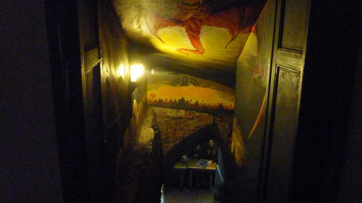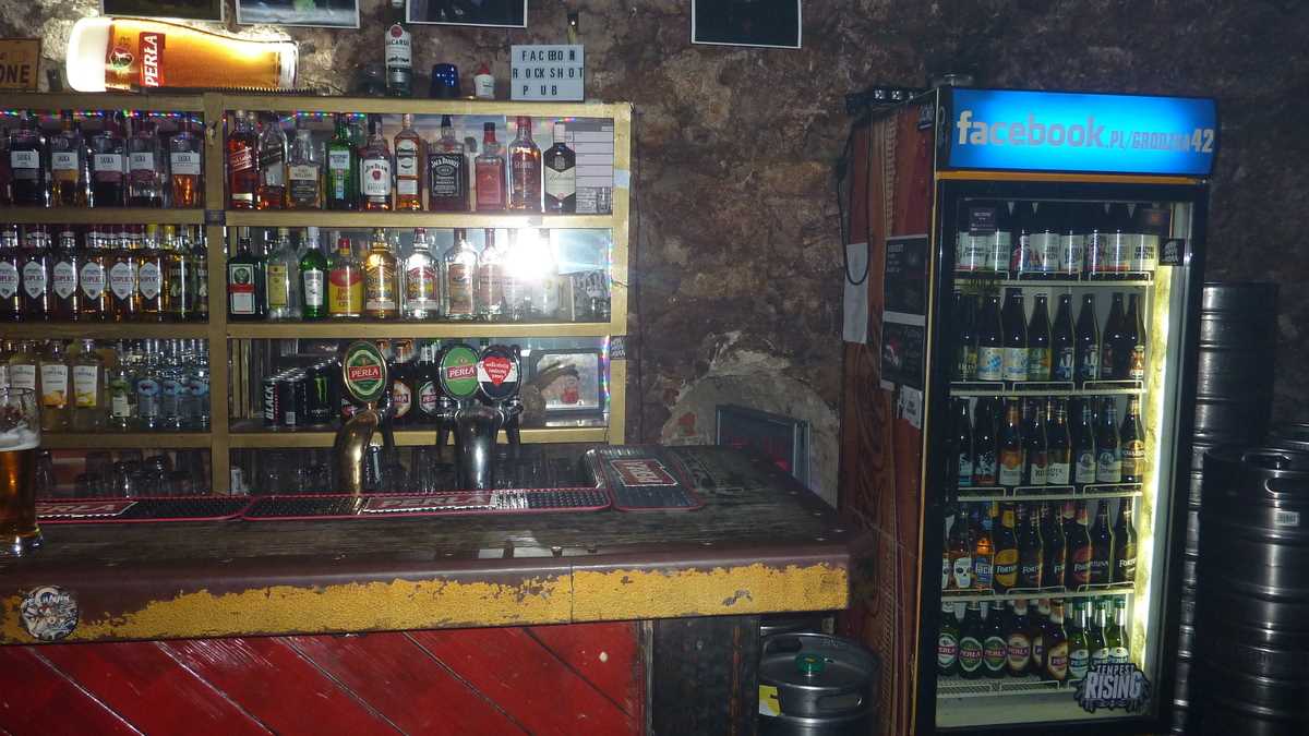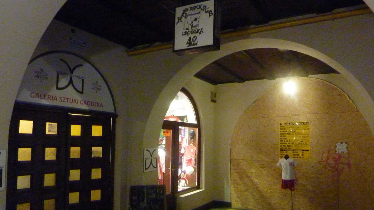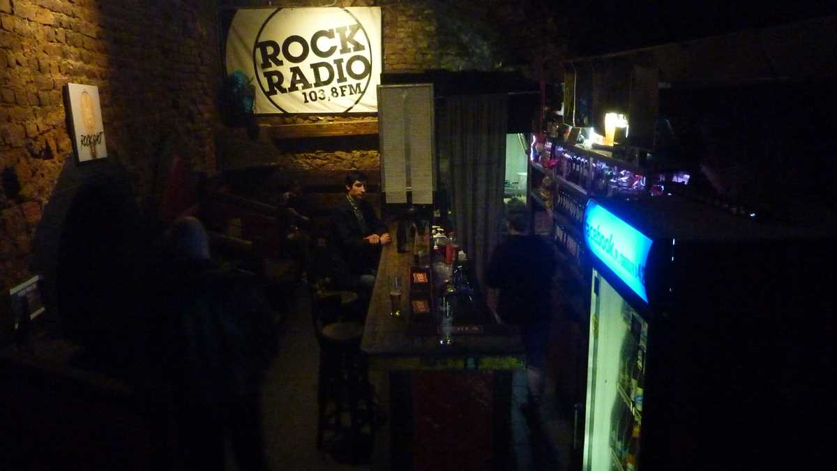 Păi, da, ce să mai fi făcut altceva? După ce-am trecut pe la hostel ca să-mi las ghiozdanul și să bag un duș, am căutat pe GPS adresa și m-am dus. Cîrciuma asta e chiar în centru: din pietonala de după Castelul Wawel care dă în Stare Miasto, treci printre niște coloane cu arcade cam ca la Romană și cobori la subsol. La capătul treptelor, în stînga, e barul, în dreapta, sala de concerte cu mica scenă lîngă care poate fi găsită ușa către budă.