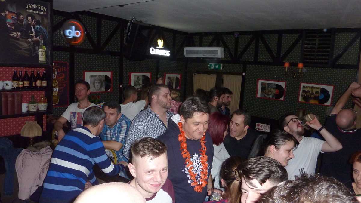 După ce-am rezolvat problema cu whisky-ul, ne-am mutat și noi înăuntru, în aglomerația veselă a dansatorilor din jurul barului poziționat central. Păcălit de un cunoscut care băuse Nemțeana și mi-o recomandase și mie, am dat un rînd la toată lumea, cu excepția Adinei, care a vrut neapărat suc. Inspirată alegere: nu știu lor, dar mie nu mi-a plăcut deloc Nemțeana asta și n-am habar cum să interpretez recomandarea amicului, ori ca farsă, ori ca… (mă mai gîndesc, poate l-am supărat cu ceva). Am trecut deci la o altă recomandare, cea a barmanului, căruia i-am cerut o bere cumsecade și am primit o nemțoaică, Augustinerbrau. O müncheneză care mi-a plăcut și pentru care am făcut periodic ture la bar.
