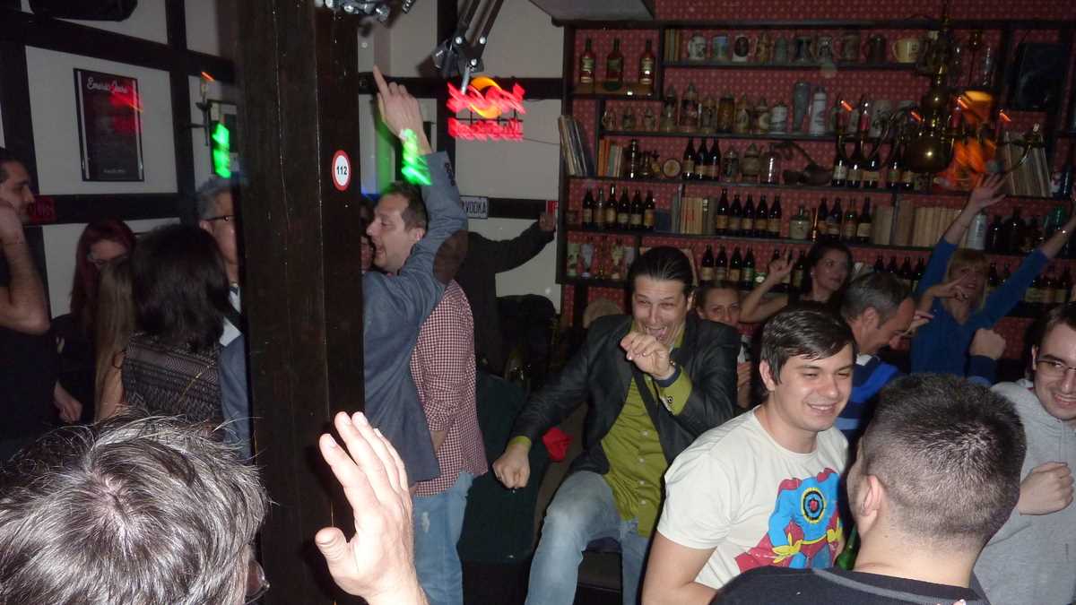 Am revenit la 80’s a doua zi, sîmbătă, mai pe seară, cu Răzvan, Florin, co-organizator, și Adina, PR-ița Salonului, ca să avem surpriza să reîntîlnim figuri cunoscute: după o zi de turnat în pahare vinuri de colecție, sommelierii VINVEST trecuseră pe bere (mare sacrilegiu, între noi fie vorba). La masa de pe terasă proaspăt eliberată de un grup care s-a mutat în interior, ni s-a alăturat și Hamba, unul dintre patroni, însoțit de o băbătie de 16 ani – sticla de Glenlivet pe care nu avea cu cine s-o bea.