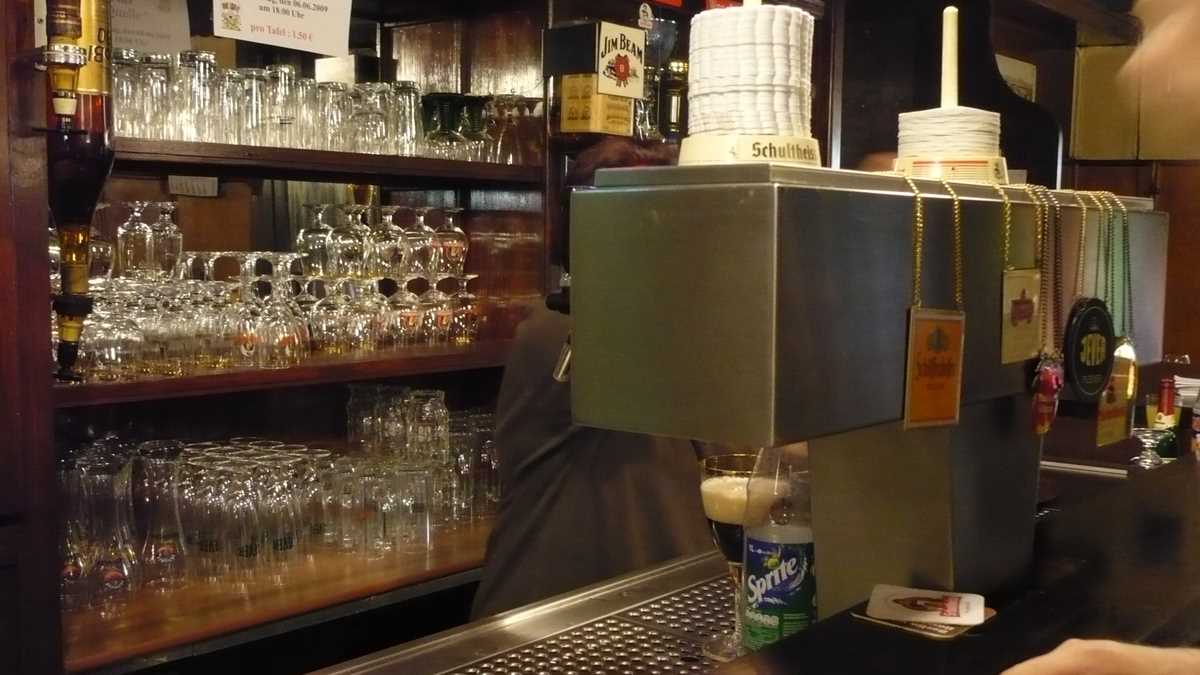 Presupun asta pentru că, pe afișele de pe pereți, Zur Quelle se laudă că ar avea venerabila vîrstă de peste o sută de ani și pentru că majoritatea clientelei e formată din localnici: o combinație ciudată de (aproape) pensionari prietenoși care-și beau berea cu o lumină nostalgică în privire și studenți la Politehnică, al căror campus e în apropiere. Plus cîțiva turiști din hotelurile/hostelurile zonei, atrași de ineditul locului. Între două comenzi, turnarea unui Schultheiss (2 euro) sau prăjirea unui wurst (1,5 euro), tanti de la bar, aflată și ea la o vîrstă respectabilă, discută amical cu toată lumea, de parcă te-ar cunoaște de-o viață, întreținînd o atmosferă relaxată, familială.