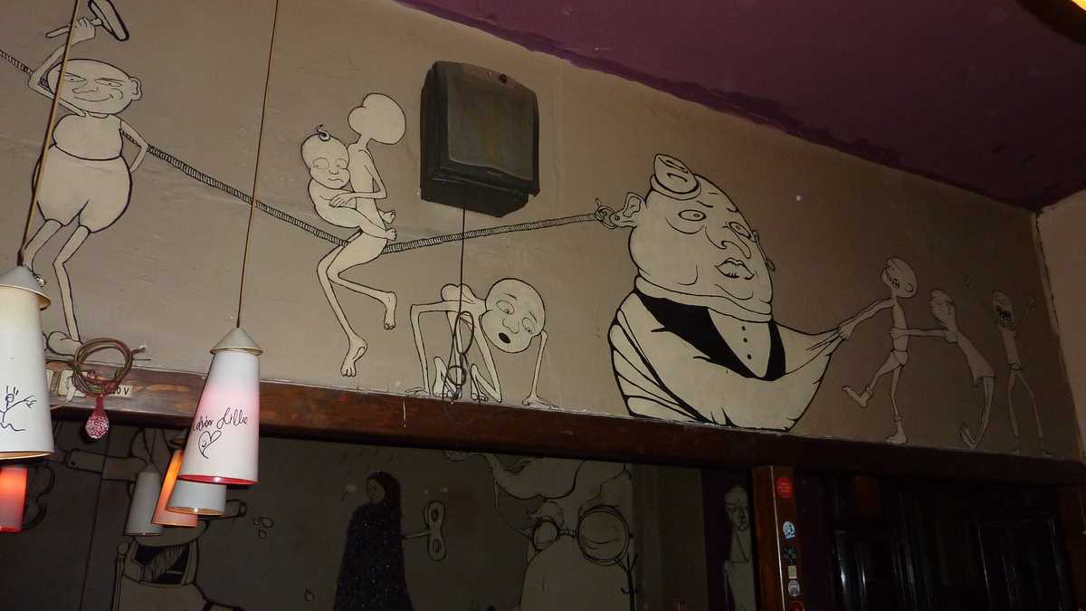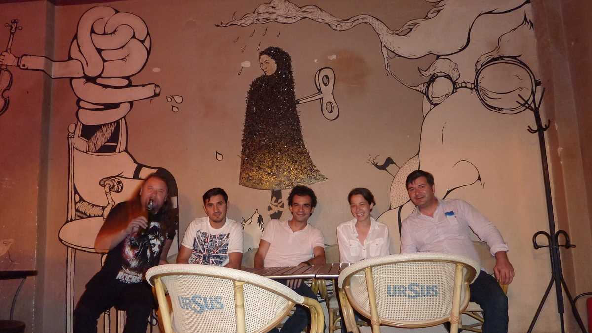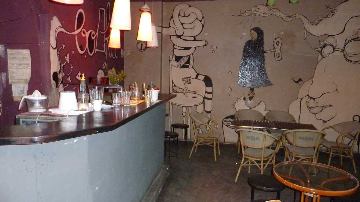 Moszkva asta nu-i în Rusia, ci tot în Oradea, pe strada Moscovei, într-o casă veche care, din exterior, pare părăsită – o ruină cu ziduri nude, fără tencuială. După ce urci o scară în spirală pînă la etaj, la capătul unui hol lung, după masa de fussbal, dai de o cîrciumă hipsterească cu aer vintage, meniu scris cu cretă pe peretele din spatele barului și lămpi cu abajur lung deasupra tejghelei. În timp ce căscam gura la desenele psihedelice de pe pereți, m-am trezit în mînă cu un Ursus de la Bogdan, în contrapartidă la berea dată de mine anterior.