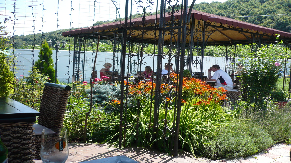 Am ales să stăm într-un separeu-chioșc, în grădina plină cu flori din spatele restaurantului, la o masă retrasă, intimă. Răsfoind meniul stufos, ca o carte de telefon cu abonați simandicoși, dînd peste titluri cosmopolite ca Octopus schnitzel (8,5 lei/100g) și Smoked salmon carpaccio (22 lei/100 g) sau Tyrolean pork fillet in sour cream, lemon and capers (19 lei) și Beef filled with gorgonzola sauce (37 lei), plus alte cîteva zeci de familii italiene de paste și pizza, mă întrebam cam cîți chef-i erau pe poziție, așteptînd comanda noastră.
