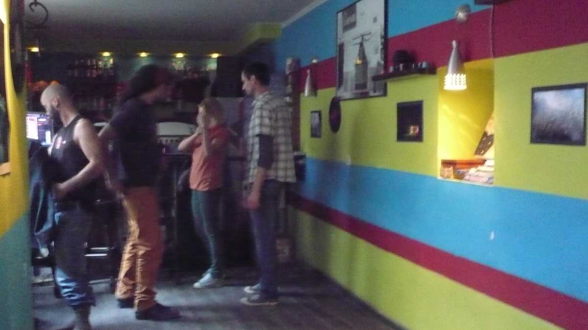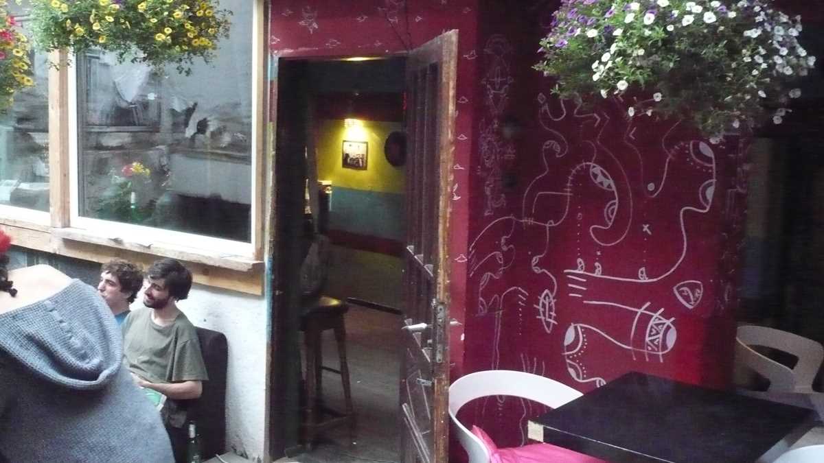 Cum: Ca să-ți iei de băut e la fel de complicat: ocolești pisica rezidentă printre ghivecele cu flori de pe o scară metalică, ai grijă să nu rașchetezi vinilurile lipite pe pereții vopsiți tricolor, și, cînd ajungi într-o înghesuială gen tramvaiul 41, înseamnă că ești la coada din fața barului.