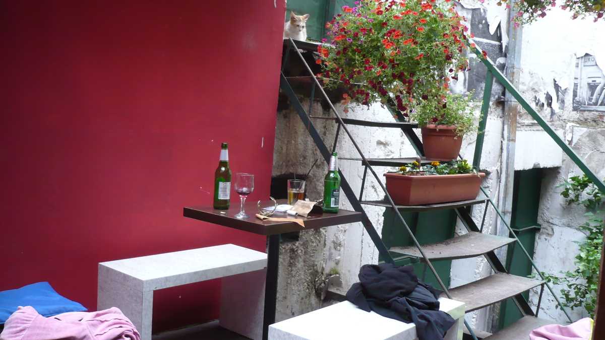 Unde: În Centrul Vechi, pe Covaci, aproximativ vizavi de 100 de beri, e Ceai Dansant, un loc în care am ajuns întîmplător, la concertul Poetrip, proiectul muzical al unui bun amic, fost impresar al trupei Travka. Intrare îngustă, ușor de ratat; după ce treci de ușa de la numărul 3, aștepți puțin pînă cînd ochii se obișnuiesc cu semiîntunericul, apoi traversezi labirintul cu canapele pe margini spre prima masă liberă din micuța curte interioară, parțial acoperită, cu vedere spre zidurile și mansardele vecine.