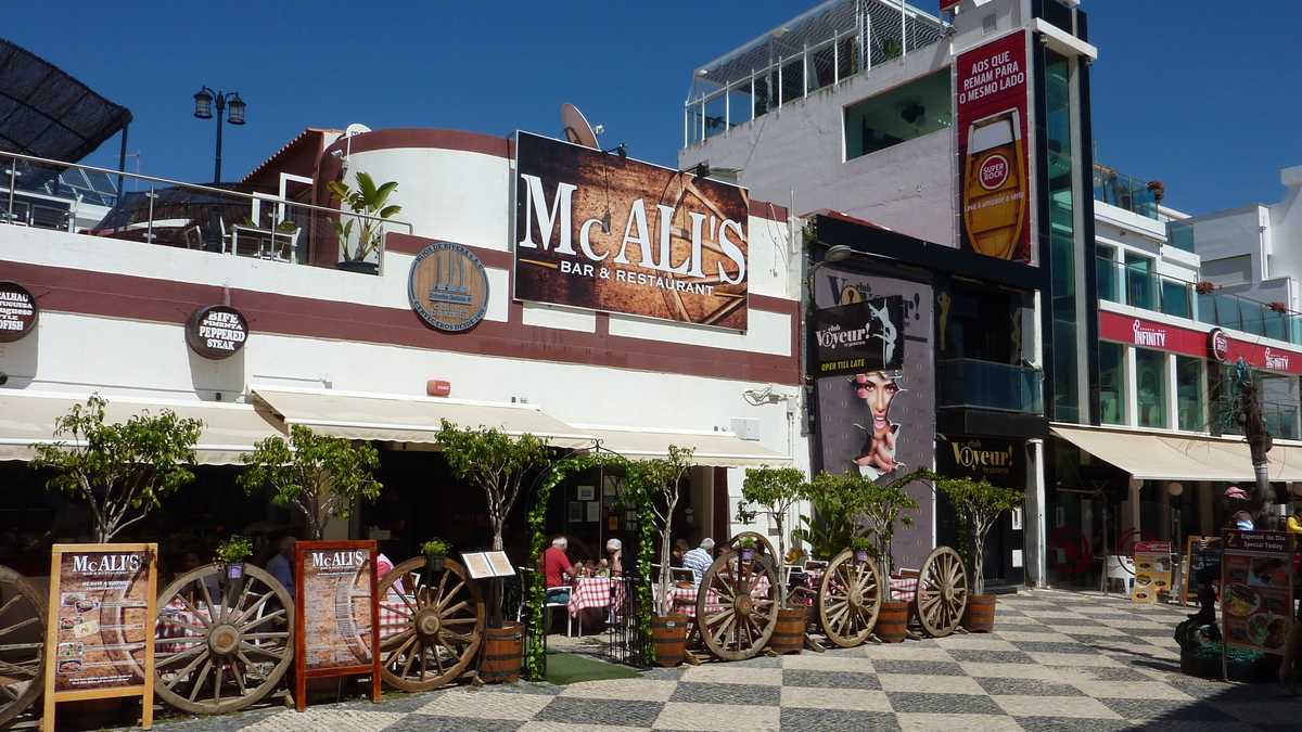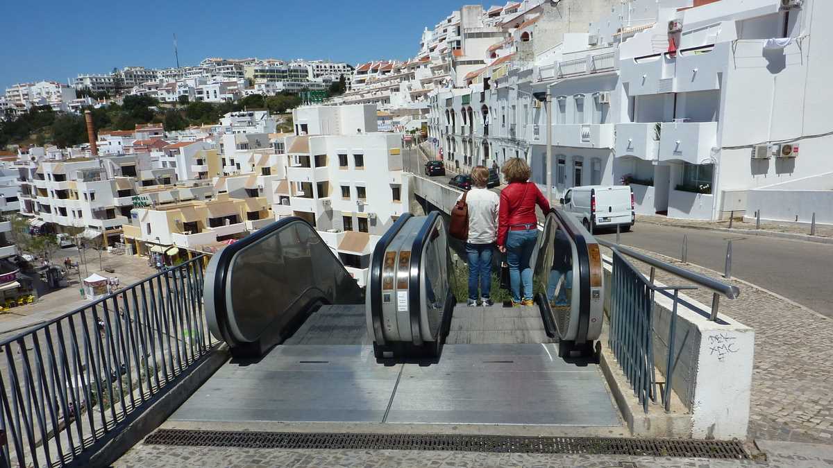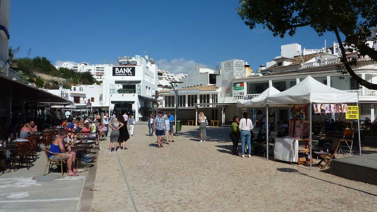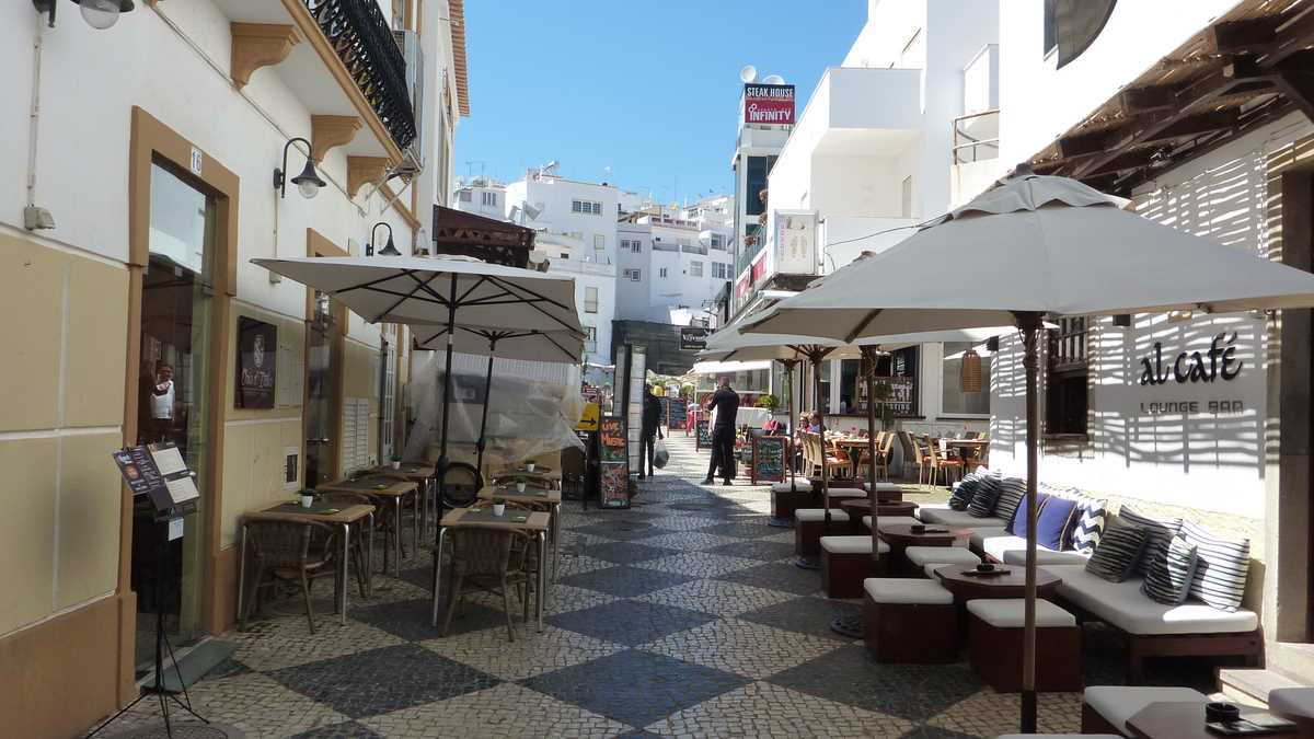 Orașul, curat și foarte întins, are o mulțime de străduțe și sensuri giratorii. Dacă stai la un hotel mai mărginaș, trebuie să fii un Ray Mears al șoselelor ca să depui mașina în cel mai scurt timp în parcarea supraetajată din centru – o rețea de pietonale ticsite cu magazine de suveniruri sau accesorii de plajă și terase la care se poate urmări, la un burger și o bere, meciul zilei, desfășurată între o piață cu palmieri înalți și vasta esplanadă la care coboară niște scări rulante – practic, un hectar de pavaj care se continuă cu zecile de metri de nisip ai plajei centrale, Praia dos Pescadores, pînă la ocean. În restaurantele de pe faleza de deasupra plajei, gurmanzii care visează scrumbie și la micul dejun au orgasm multiplu doar la vederea meniurilor dominate de feluri din pește și fructe de mare, stropite cu excelentul vin local și o bere mai ieftină ca la greci (1,50-2 euro).