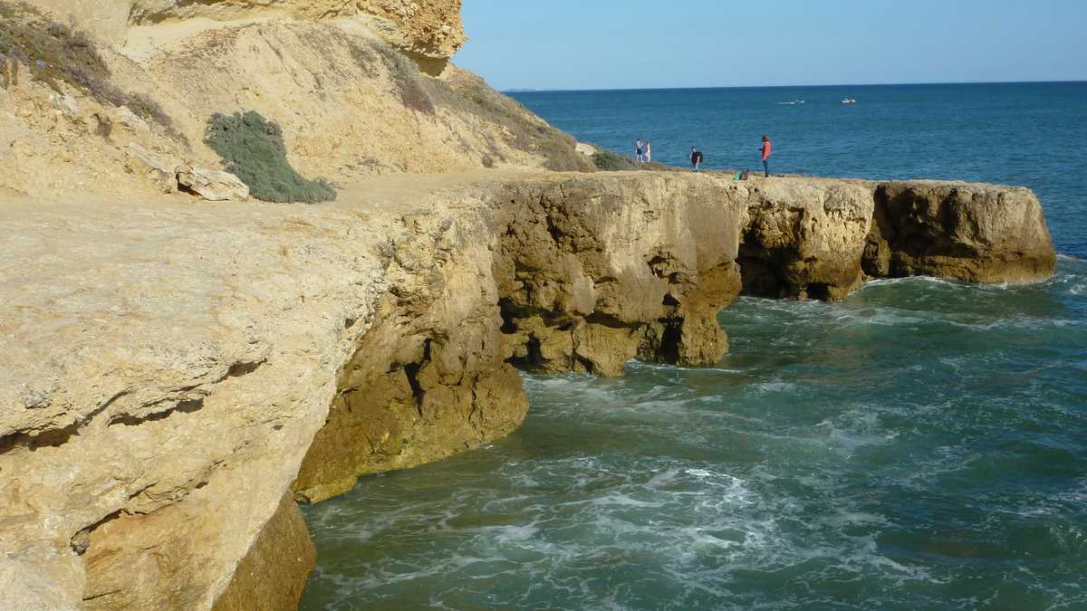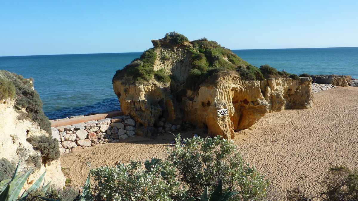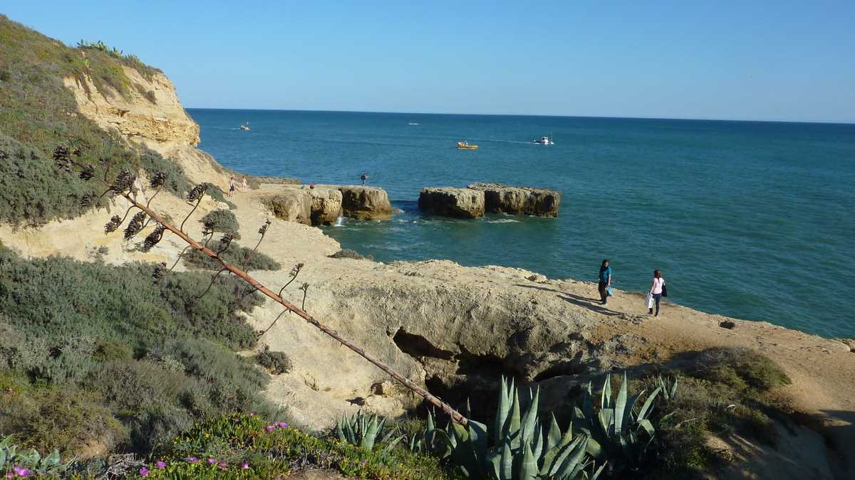 Asta mi-a plăcut cel mai mult în Albufeira, așa că, în ultima zi, cea dedicată shopping-ului, după ce m-am îmbrăcat, într-un magazin Força Portugal, cu un tricou cu Algarve (13 euro, două la 20 de euro) și un fular roșu-galben-verde (5 euro), am revenit din centru la hotel pe plajă. Linia țărmului m-a condus prin niște locuri de o frumusețe sălbatică, în care apa spumegă în stînci de cele mai bizare forme și plaja se transformă în potecă de deal, printre cactuși, floră spontană și scări din lemn spre terase ascunse în vegetație. Pe anumite porțiuni, pare un traseu cvasimontan nemarcat, pe care autoritățile locale nu l-au transformat în obiectiv turistic de teama eventualelor accidente. Gen turiști în șlapi care ar trebui adunați de prin tufișuri sau de pe colții stîncoși linși de valuri.