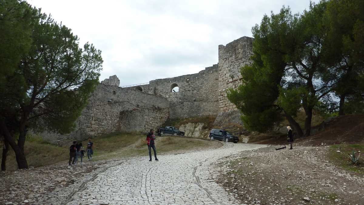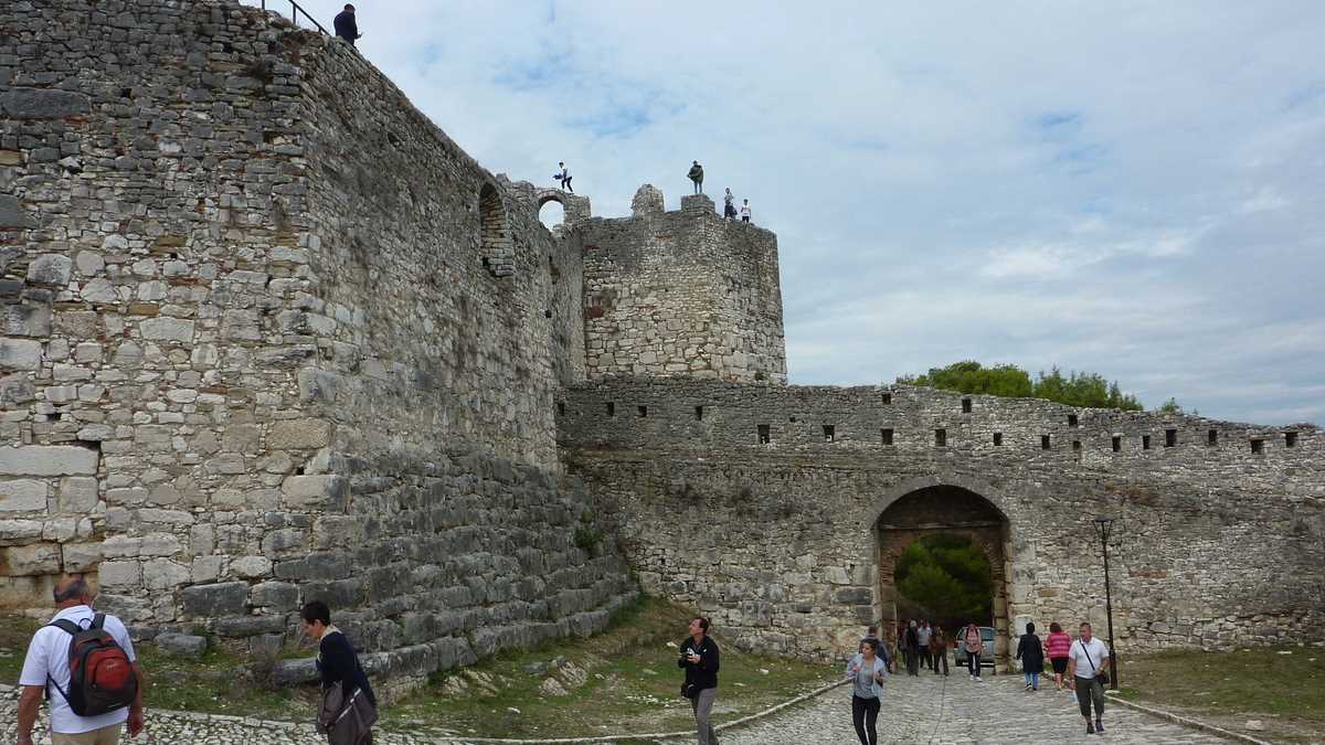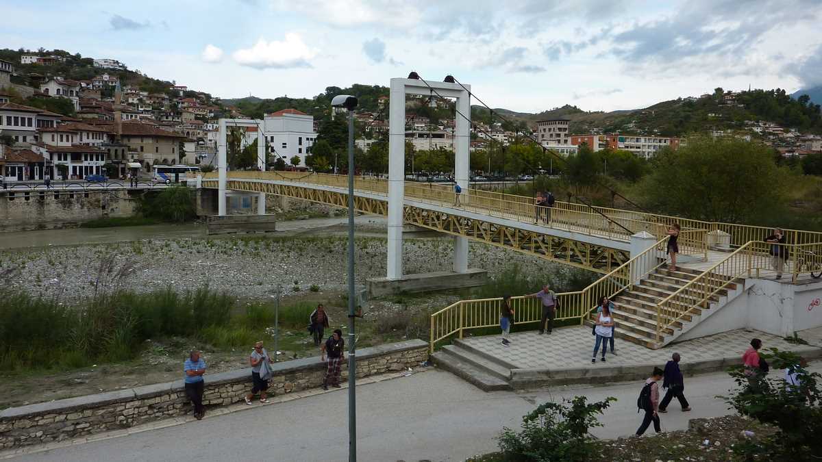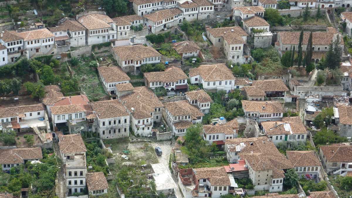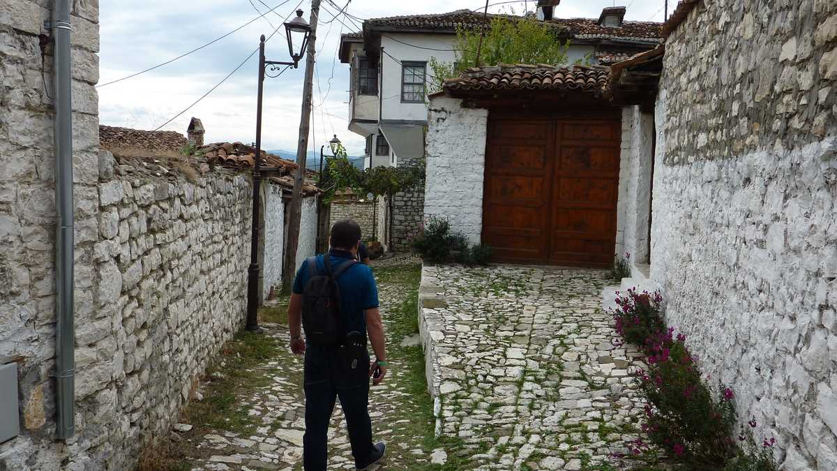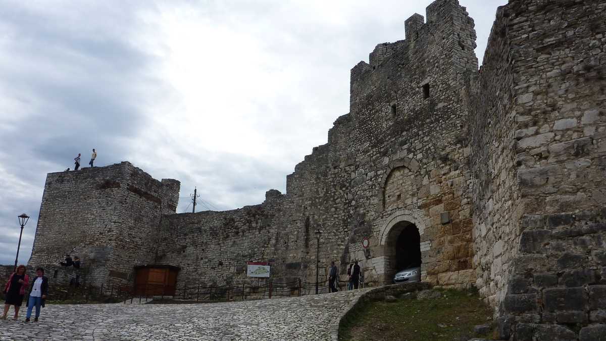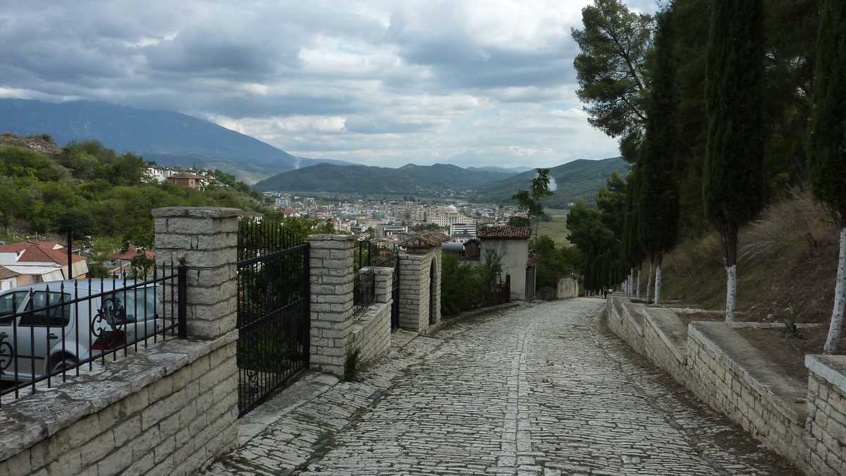 Drumul spre fortăreața de pe dealul caselor din Mangalem e foarte îngust (dacă se întîlnesc două autocare, se blochează tot traficul) și are asfaltul spart intenționat, parcă, pentru a se asorta cu calea pietruită care urcă spre cetatea încă locuită. Biletul de intrare costă 200 de leka, la fel ca și accesul în biserica bizantină transformată în muzeu al frescelor și icoanelor pictate, majoritatea, de Onufri, pictorul național albanez de secol XVI, dar, dacă le vizitezi în week-end, nu trebuie să plătești absolut nimic. Ieșit din muzeu, o să te plimbi în continuare printr-un tablou medieval cu totul și cu totul din piatră – ziduri, străzi, case – și o să treci printr-o pădurice de pini spre punctul de belvedere situat la înălțime de unde se fac, cică, cele mai grozave selfie-uri din Berat.