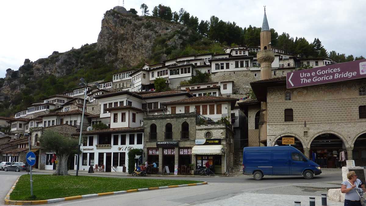 Apropo de sectorul care ne interesează, Berat este o localitate foarte turistică. În sensul că e plină cu capcane pentru turiști, clasice (prețuri umflate la produse și servicii mediocre) sau moderne, cursul valutar valabil în unele magazine, restaurante, case de schimb fiind unul foarte diferit (un euro la suta de leka) de cel oficial (1 euro = 132 leka). Singura parte care merită cu adevărat vizitată, Beratul vechi, Orașul celor o mie de ferestre, cum i se mai spune, figurează pe lista UNESCO din 2008. Nu se știe cine a avut răbdarea să le numere, chiar dacă sînt grupate mai toate în districtele musulman (Mangalem) și creștin (Gorica), cartierele dispuse în oglindă, față în față, pe doi versanți de deal despărțiți de rîul Osum, și compuse din case vechi cu etaj și geamuri mari construite în pantă, unele lîngă altele și unele peste altele, asemenea celulelor unui stup.