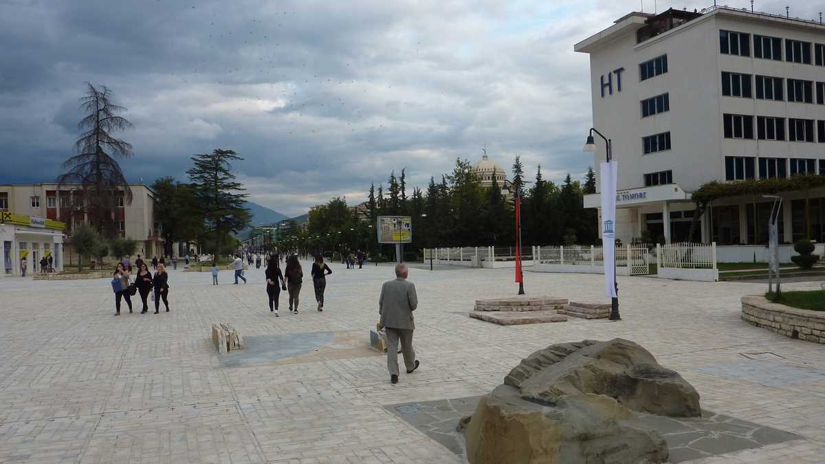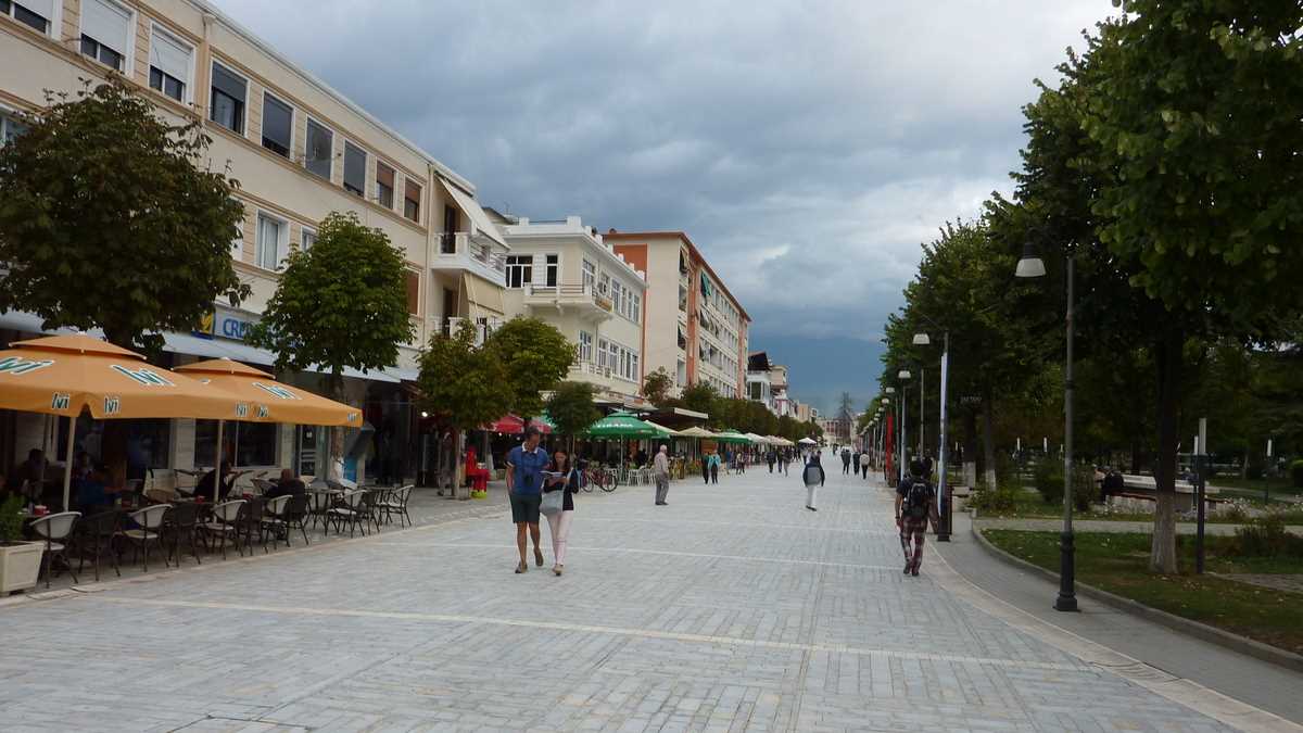 Coborît în oraș o să treci podul dincolo, în Gorica, pentru o altă vizionare de străduțe înguste separate de case construite în pantă. Sau o s-o iei la pas pe pietonala cu terase și shop-uri care dă într-o piață imensă mărginită de o moschee, un complex comercial, un hotel. Clădirile astea centrale arată decent, au un var recent întins pe fațadă, dar, dacă interesul și curajul te împing să arunci o privire după ele, o să te trezești direct în realitatea expresiei cu gardul și leopardul, printre blocurile-ghetou comuniste ale unui Zăbrăuți albanez.