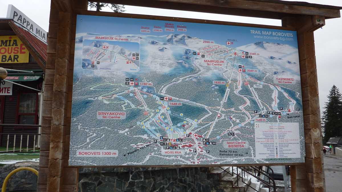 La vreo 72 kilometri de Sofia și 125 kilometri de Plovdiv, în Borovets, o stațiune montană mică de altitudine mare (1.315 m) înconjurată de pădurile de conifere de pe versantul nordic al Munților Rila, un fel de Păltiniș bulgăresc cu mai multe hoteluri, pensiuni, restaurante tradiționale și baruri pe lîngă pîrtiile late, pentru schiori începători și de nivel mediu. Resort-ul cu centru la sosirea pîrtiei principale din fața hotelului Rila (două corpuri de zece etaje, n-ai cum să-l ratezi) are doar cîteva market-uri, o farmacie, niște bancomate și, pe străduța spre stația telegondolei, o mulțime de centre de închiriat echipament și tarabe cu suveniruri. Plus, bineînțeles, mehane, cîrciumile locale în care se mănîncă foarte bine, la prețuri similare celor din Predeal sau Bușteni.