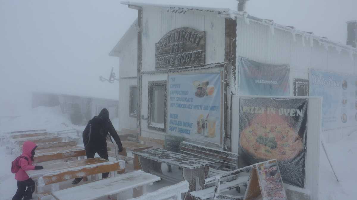 La care telegondolă e recomandat să vii mai din timp (program 8,30-17), ca să fii printre primii la cozile care se formează în fața ghișeului de vînzare a cardurilor și la punctul de îmbarcare în cuștile de plexiglas cu patru locuri. Odată plecat, ai timp de citit mail-uri și de postat status-uri invidiate de amicii online: faci cam 25 de minute pînă la stația finală Yastrebets (mai există una, pe la cota 1.830, pentru cei care coboară la un complex intermediar de pîrtii), situată la altitudinea 2.369 m. Dacă nu e ceață și/sau viscol, de la Yastrebets se poate pleca pe picioare spre cel mai înalt vîrf al Balcanilor, Musala (2.925 m). În caz că traseul este închis de salvamontiștii locali pe motiv de vreme proastă, ca să nu zici c-ai urcat degeaba, te poți consola cu un ceai fierbinte (4 leva), un vin fiert (6 leva) sau o supă caldă (6 leva) la cabana-restaurant The White House, o viluță din lemn cu adevărat albă, de la promoroaca, țurțurii și florile de gheață de pe geamuri.