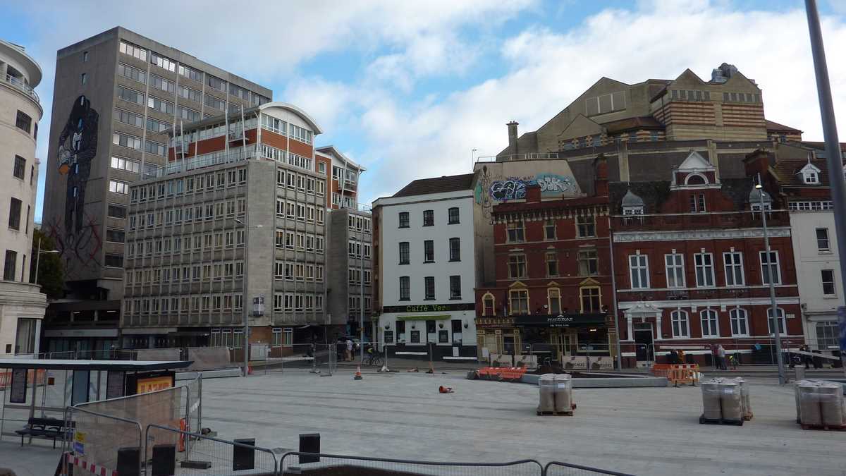 Ajuns pe aeroport cu un avion de seară tîrzie și la hostel-ul din centru, aproape de miezul nopții, în primele ore ale city broke-ului de Bristol, n-am avut cum să văd mare lucru din orașul în care tocmai aterizasem. O biserică gotică mare, vizavi de stația autobuzului de transfer First (11 lire, dus-întors), o piață-părculeț rectangulară, cu gazon și copaci, închisă între clădiri (Queen Square) și o roată ca de parc de distracții dincolo de podul pietonal al canalului din fața hostel-ului, cam astea au fost toate chestiile sesizate pe scurtul drum ghidat de GPS stație-cazare.