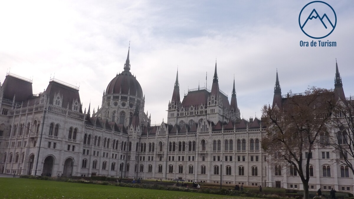 Ultima oprire, înainte de întoarcerea la navă, a fost la Palatul Parlamentului, parte a proiectului arhitectonic aniversar „Un mileniu de locuire a acestor meleaguri„, o clădire grandioasă, care, după spusele ghidei, are ornamentele interioare acoperite cu 40 de kilograme de foiță de aur. Proiect complicat al arhitecților, construit pe niște piloni speciali înfipți în terenul mlăștinos, palatul, foarte modern la inaugurare, a avut un sistem de climatizare revoluționar în epocă, care nu numai că furniza încălzire centrală, dar se comporta și ca o proto-instalație de aer condiționat: vara, aerul răcit de blocurile de gheață de la subsol era ventilat în sălile de ședințe ale Parlamentului, bicameral, la acea vreme.