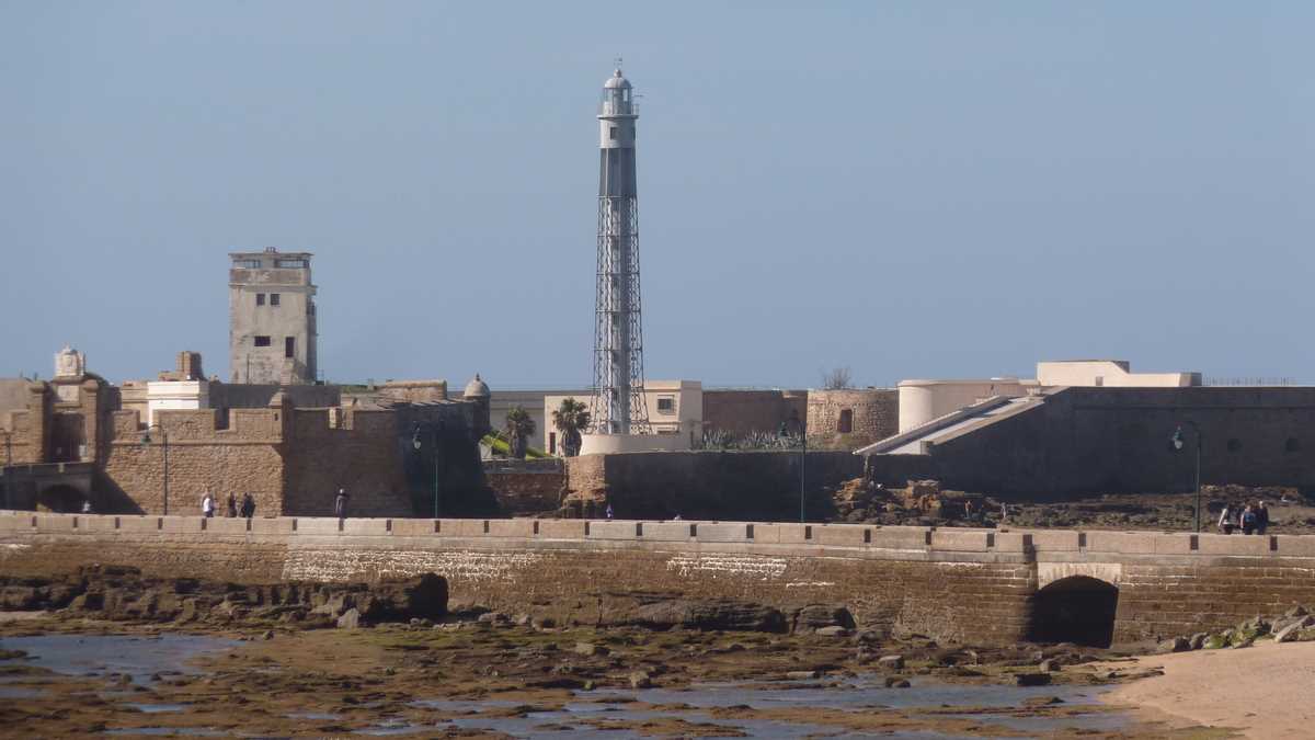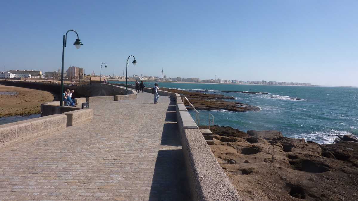 Dintre toate bastioanele de apărare împotriva atacurilor navale, cel mai avansat în ocean e Castillo de San Sebastian, fortăreața de pe insulița legată de oraș printr-un dig de cîteva sute de metri, Paseo Fernando Quiñones, loc de promenadă și pentru romantici, și pentru fotografii care vor să pozeze Cadizul dinspre larg, fără barcă.