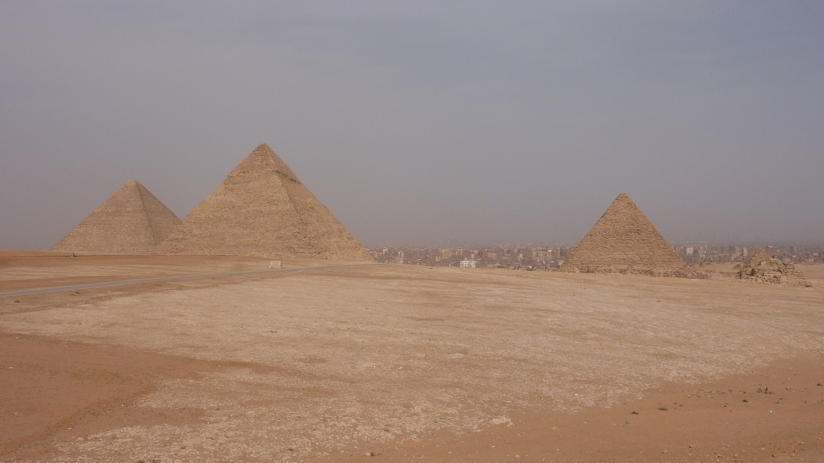 După traversarea podului peste Nil spre malul vestic, printre macaralele din spatele blocurilor, la marginea deșertului, încep să se întrezărească niște siluete ascuțite. E semn că te apropii de Giza, locul celebrelor construcții antice ale lui Keops, Kefren și Mikerinos, al altor piramide mai mici, înălțate în onoarea părții feminine a familiei faraonilor, și al Sfinxului. Doar în primele două se poate intra (cea a lui Mikerinos este închisă pentru restaurare) și nu, nu ți se mai permite să urci pe ele pînă pe vîrf, ca pînă acum ceva timp: interzicerea cățărătorilor e doar una dintre măsurile luate pentru protejarea piramidelor expuse de 4.500 de ani diferitelor intervenții exterioare, naturale sau nu.