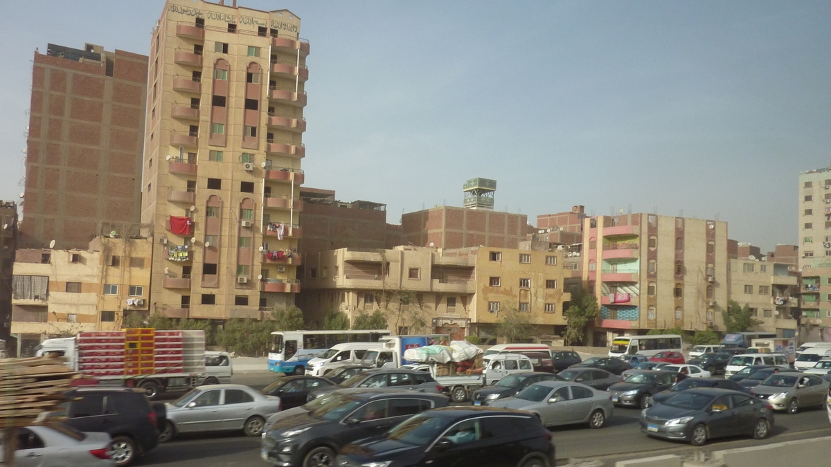 Văzut de după geamul autocarului, Cairo e un Istanbul african, ca extindere (32 de cartiere) și număr de locuitori (spre 20 de milioane), care, pe alocuri, seamănă un pic și cu Bucureștiul. În liniile arhitecturii franceze a anumitor clădiri centrale, în haosul traficului rutier gălăgios și supraaglomerat (un coleg remarca surprins că n-a prea văzut semafoare), în ambianța contrastantă, inclusiv cromatic, din diverse zone – verde și aerisită pe drumul de la aeroport, gri-gălbuie, înghesuită și murdară, pe la periferii. Egiptenii au, însă, o scuză pentru tot deranjul ăsta urban: se construiește masiv și în ritm alert noua capitală administrativă, New Cairo, care va fi casă pentru vreo șapte milioane de localnici privilegiați, așa că-i oarecum explicabil de ce deasupra orașului persistă un fel de smog compus din noxele mașinilor, praful de ciment ridicat de pe șantiere și nisipul adus de vînt dinspre deșert.