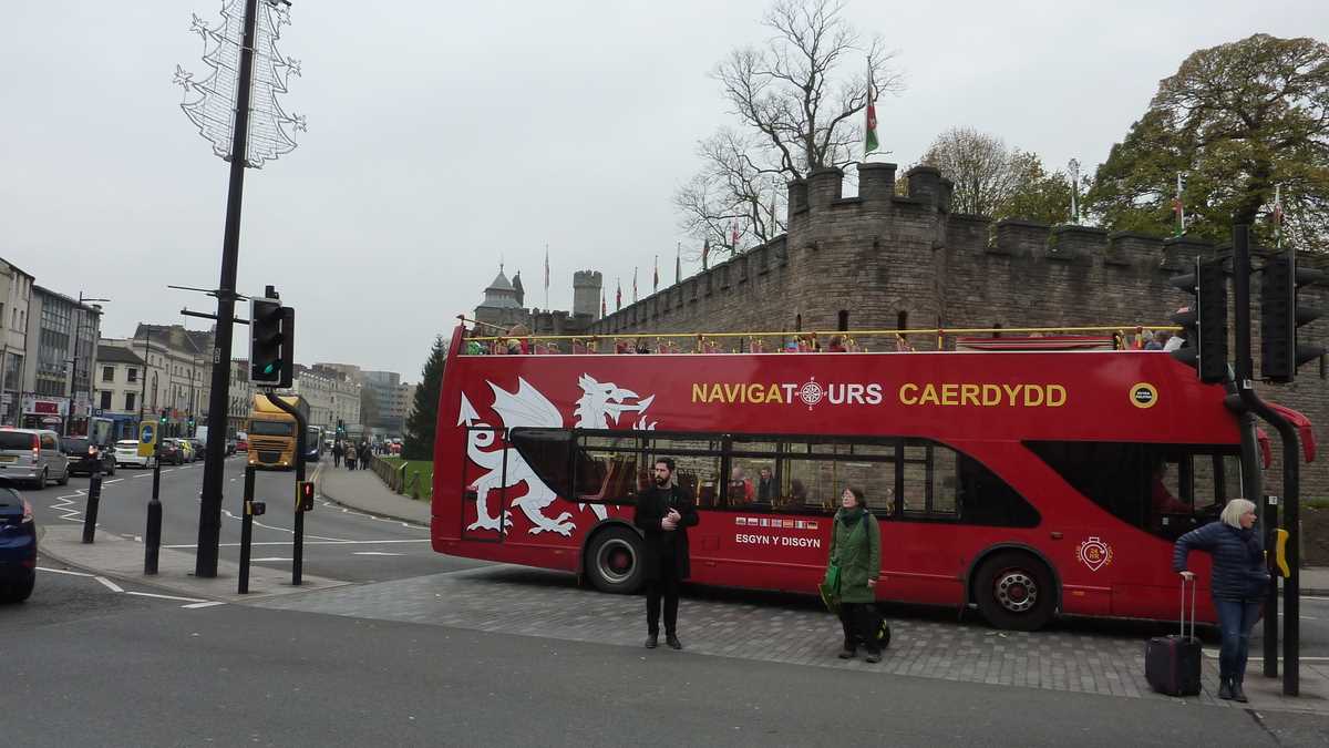 Autobuzul Megabus în care mă urcasem, pe la prînz, în Bristol, după ce șoferul a verificat codul primit prin e-mail – două lire dus-întors, 50 p. taxa de plată cu cardul; rezervare făcută cu vreo lună în avans –, m-a lăsat, vreo oră mai tîrziu, în stația de peste drum de Primărie, la cîteva sute de metri de zidurile Cardiff Castle.