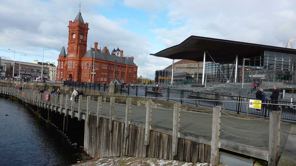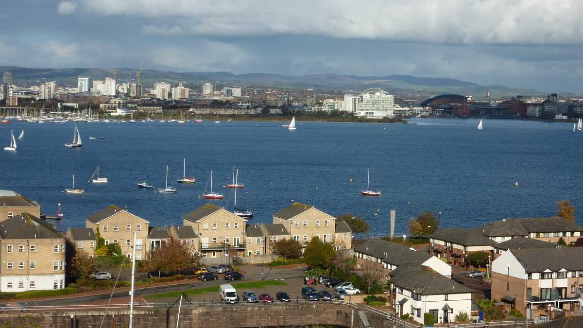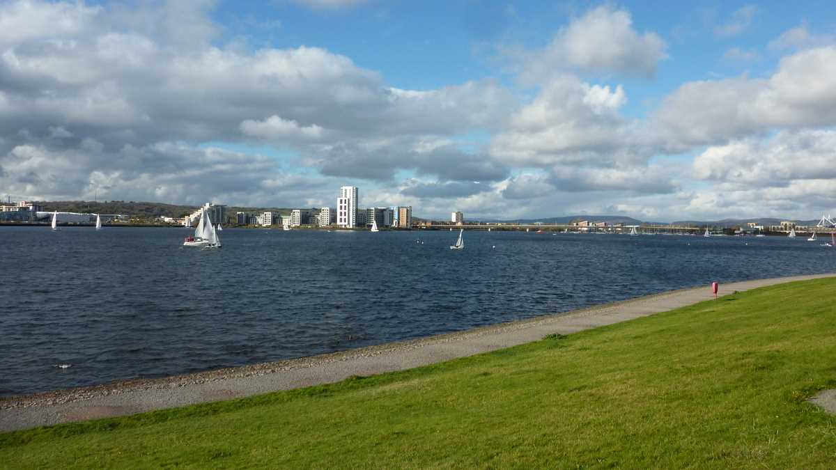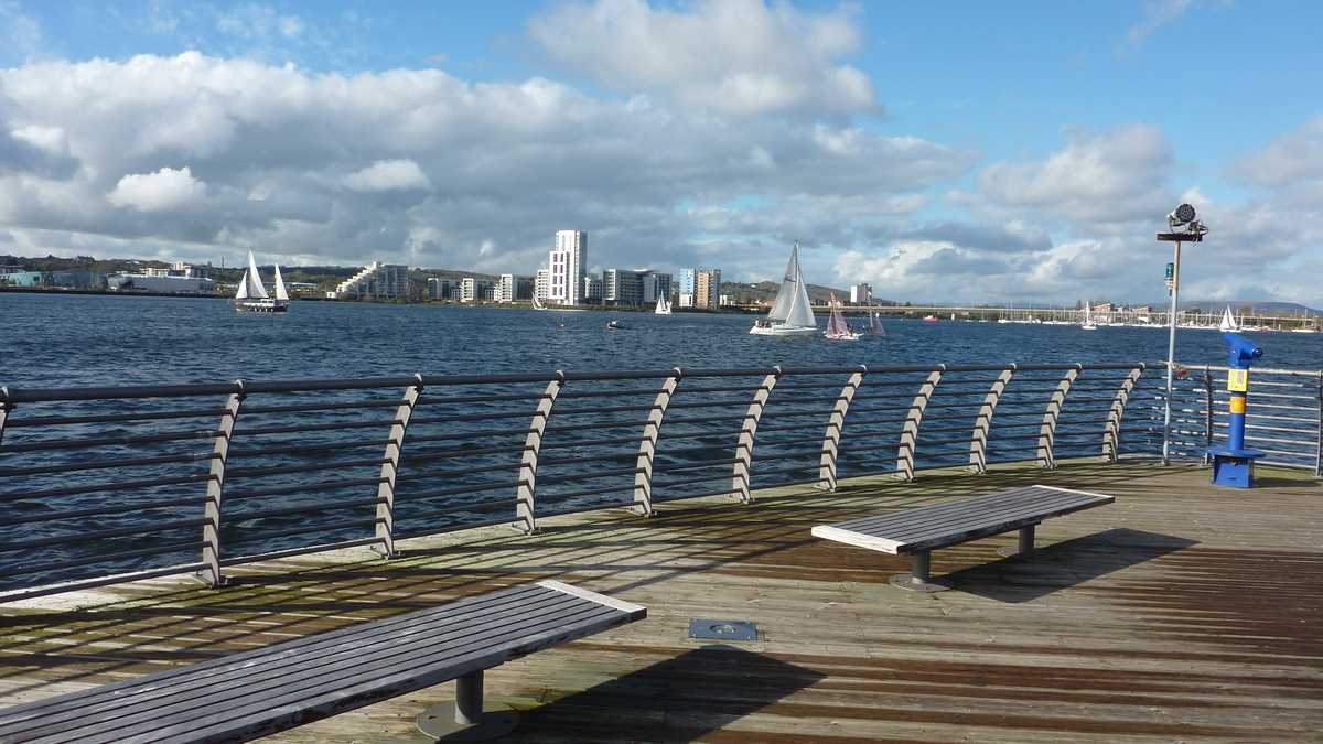 Cea mai interesantă parte a sightseeing-ului va fi descoperită doar de turiștii dispuși să dea o tură golfului, pe cei aproximativ zece kilometri de trotuar/pistă pentru joggeri/bicicliști de pe faleza barajului care închide Cardiff Bay (cei deja obosiți pot lua un Aquabus – 4 lire). Construit la sfîrșitul anilor ’90 (1990), barajul a creat un lac artificial separat de apa mării care, în afara ecluzei, la reflux, e o mlaștină imensă. O idee de cum arăta portul înainte poți să-ți faci în Penarth, orășelul-stațiune de coastă la Bristol Channel suburbie a Cardiff-ului: debarcaderul care părăsește faleza ca să se avînte zeci de metri în larg are pilonii adînc scufundați în mîl.
