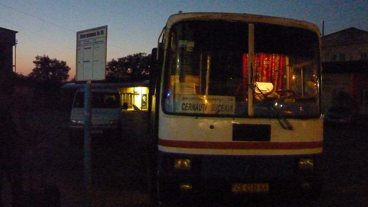 Am părăsit Чернівці́* – cum scrie, tăiat, pe un indicator – într-o duminică dimineață de octombrie, puțin înainte de răsărit; străzile erau populate doar de lucrători de la salubritate care măturau gunoaiele, cu tot cu ultimii bețivi rămași de la petrecerea din ajun. Venisem în Cernăuți cu trenul, dar, pentru diversitate și o documentare turistică cît mai completă, plecam cu autobuzul. A, și pentru că mai aveam schimbate doar 200 de grivne, fix prețul biletului de autobuz pînă la Suceava, deci călătoria a început cu vreo trei-patru kilometri parcurși pe jos, din centru, pe lîngă parc și stadion, pînă la autogară, o clădire cam obosită, văruită în albastru, aflată la ieșirea din oraș spre România.