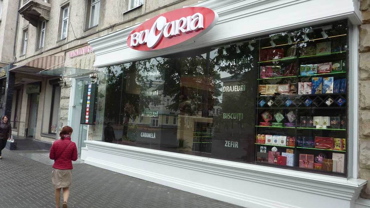 Experiența asta amară poate fi îndulcită intrînd într-un magazin Bucuria. Bucuria copiilor și a dependenților de dulciuri viitori diabetici: la vînzare vrac o să găsești sortimente foarte variate de bomboane cu prune, bomboane cu nuci, bomboane cu ciocolată, bomboane cu di tăti. Ca să cumperi, nu e nevoie să vii din țară cu lei de-ai lor, luați în România la un curs îngrozitor. Orașul e plin de case de schimb, cum sînt pe la noi farmaciile și băncile, aproape la fiecare colț de stradă cîte două-trei, de parcă Chișinăul ar fi capitala mondială a turismului.