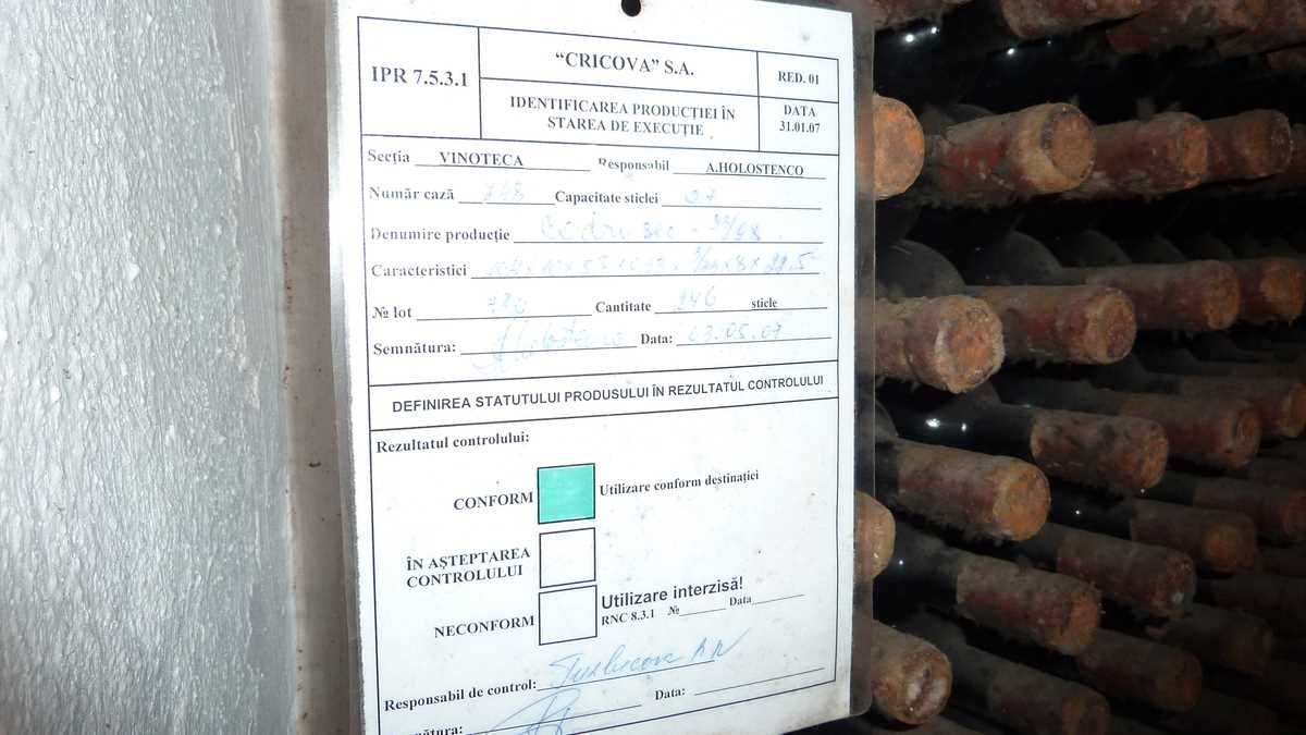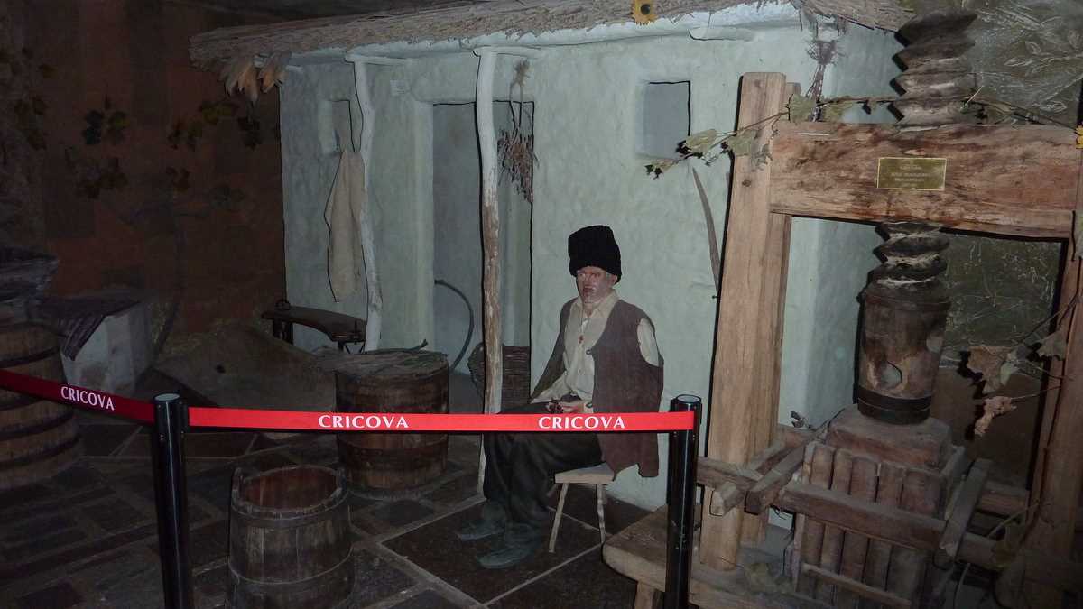 Vizita începe într-un mic muzeu, cu o scurtă istorie locală a vinului, în fața instrumentarului arhaic al producerii lui, și continuă în vinoteca în care vedetele sticlelor prăfuite din caze, niște firide numerotate pentru păstrarea evidenței, sînt colecția de vinuri rare a lui Göring, revenită Uniunii Sovietice ca reparații după WW2 (niște vinuri acum moarte, la fel ca victimele mareșalului nazist, speranța de viață a unui vin fiind de 35-40 de ani), și, sub un clopot de sticlă, singura sticlă care a supraviețuit lotului Ierusalim de Paști din 1902. Vecine cu VIP-urile astea sînt cazele personale ale șefilor lumii contemporane: Putin, de exemplu, are, la numărul 275, vreo două sute și ceva de sticle din care poate comanda telefonic oricîte dorește (problema mare o să fie cînd o să ceară cîteva milioane de sticle, doar pentru el și camarazii din Armata Roșie). De pe un perete ne zîmbesc celebritățile care au vizitat Cricova; în principal, șefi de state (dintre ai noștri, sînt prezenți toți președinții – probabil, și Ceaușescu a fost la Cricova, dar poza lui a avut aceeași soartă ca și portretele sale, la Revoluție –, Ponta, Cioloș, Principele Nicolae), plus Iuri Gagarin, primul șef al Pămîntului, care și-a pierdut echilibrul vreo două zile pe-aici, simulînd o ieșire în spațiu. Pentru cei interesați de procesul tehnologic să spunem că se ajunge și în zona de fermentare și la stația de îmbuteliere a vinului spumant, precum și în micul cinematograf în care rulează un filmuleț de prezentare a complexului.