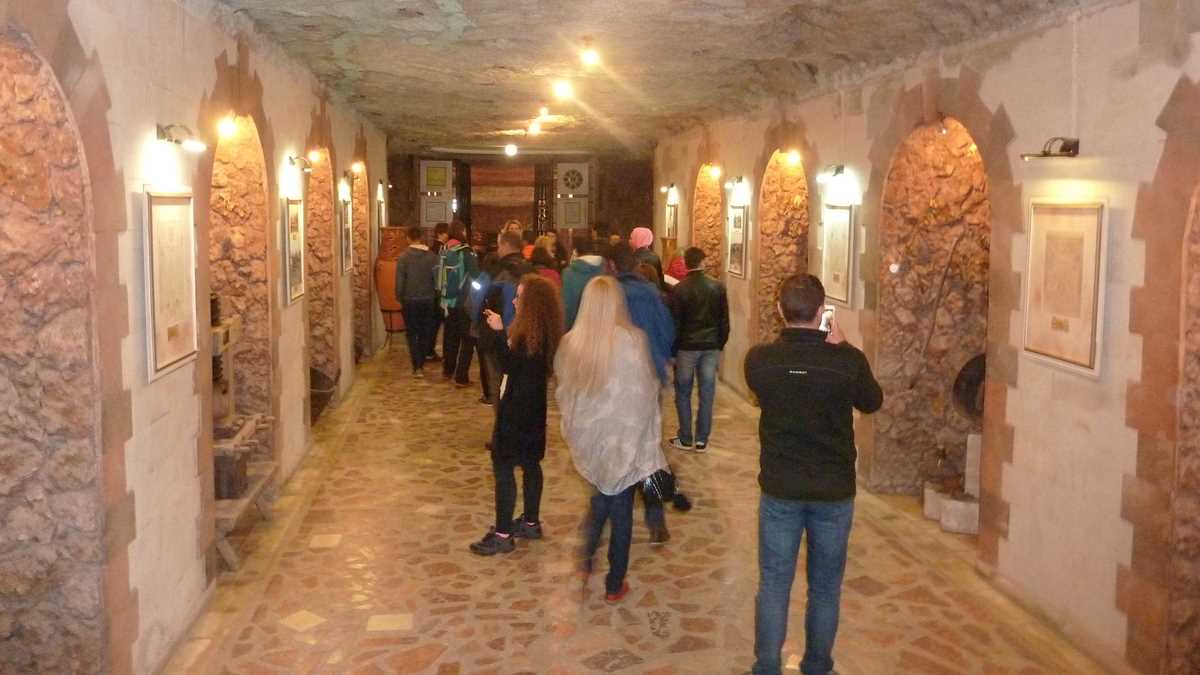 Ați ghicit deja, probabil: vom vizita orașul subteran din care, de mai bine de 65 de ani, moldovenii scot piatră și bagă la loc vin – Cramele Cricova, sau Combinatul de Vinuri, numele oficial (o denumire cam neinspirată, cu iz de chimicale, dacă întrebați un român care a trăit vreodată într-un centru industrial), înființate în 1952, parte a patrimoniului cultural național al Republicii Moldova. Cu o adîncime între 35 și 80 de metri, o temperatură constantă de 10-12° C și o umiditate relativă a aerului de 97-98%, cariera subterană de piatră din care s-a (re)construit Chișinăul după cel de-al doilea război mondial s-a dovedit a fi locul perfect pentru păstrarea în stare lichidă a strugurilor din podgoriile moldovene, așa că galeriile excavate în piatra poroasă au fost transformate în beciuri vinicole lungi de vreo 80 de kilometri (and still counting, pentru că activitatea de înlocuire a pietrei cu vinul e un proces continuu). Taxa de acces înăuntru este de 175 de lei moldovenești, aproximativ 40 de lei de-ai noștri, achitată la recepția de la intrare, de unde un ghid preia grupurile pentru un tur de cramă și o degustare a patru vinuri, în reprize amestecate cu biscuiți și nuci.
