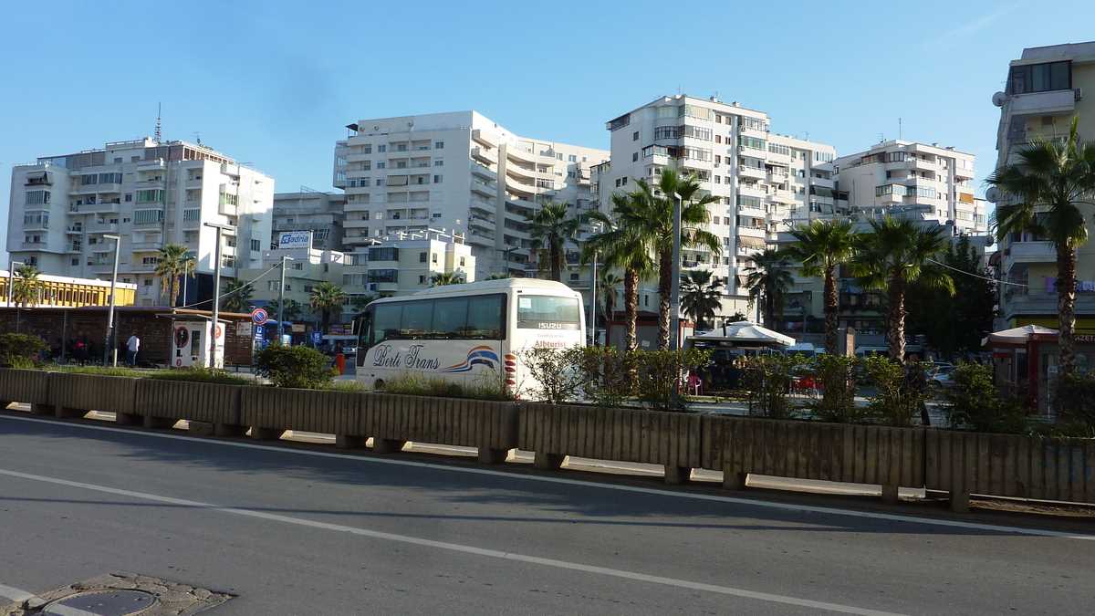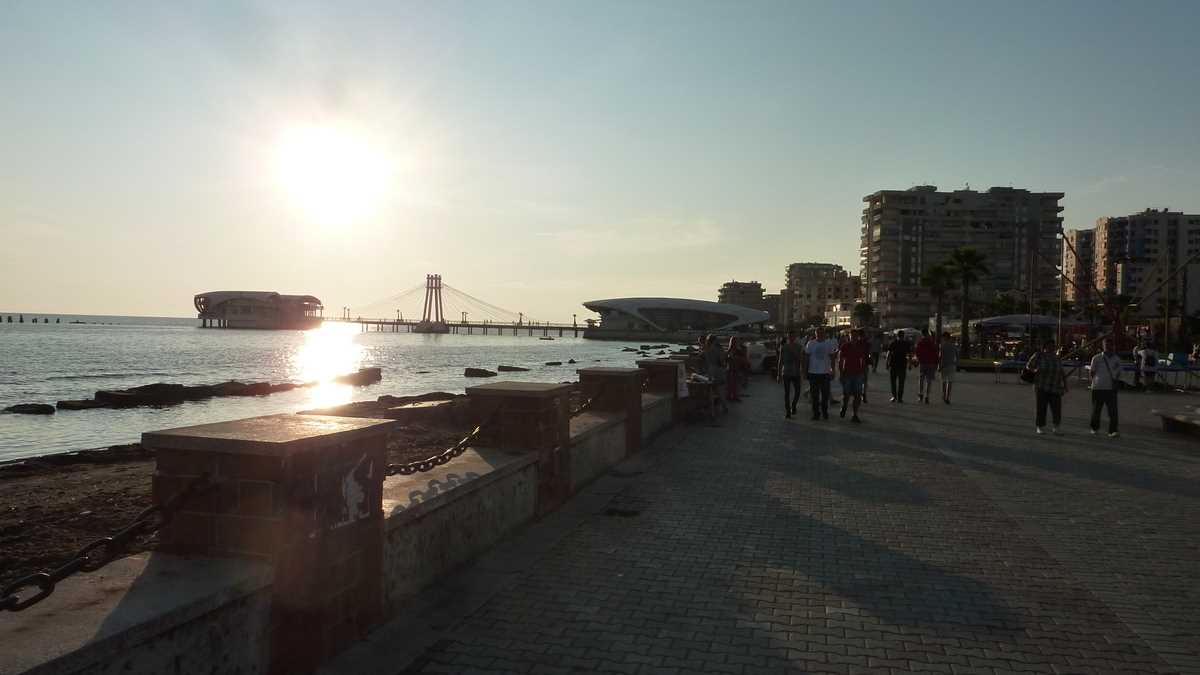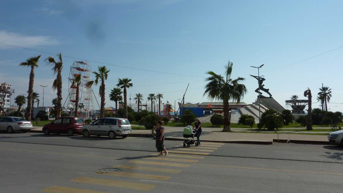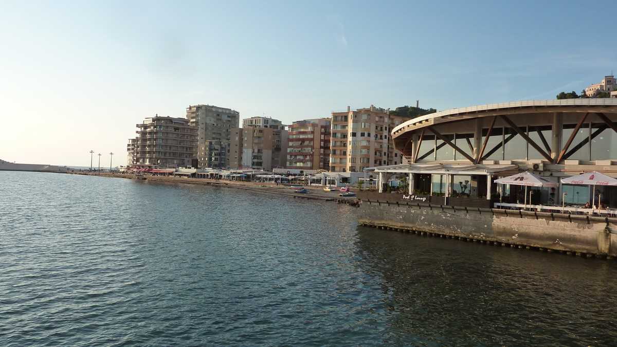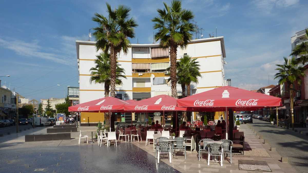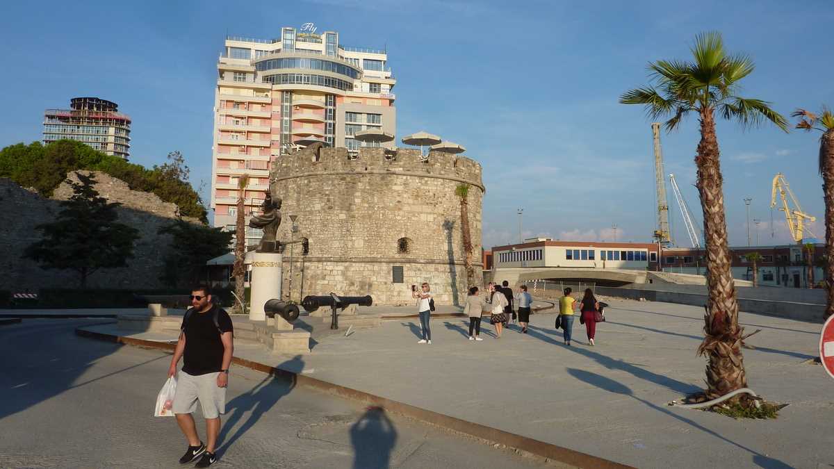 La o primă impresie, orașul arată decent spre bine. Cel puțin în centru, e curățel și respiră un aer de civilizație cu care a început să se obișnuiască deja și partea asta de Europă de după fosta Cortină de Fier: piață largă, pavată complet, inclusiv pe partea carosabilă, din care pleacă o semi-pietonală (în sensul că, seara, este exclusiv pietonală) flancată de palmieri înalți cît clădirile de două etaje la parterul cărora locuiesc cafenele, restaurante, magazine de suveniruri, faleză cu zonă de promenadă și parc de distracții, debarcader modern între două complexuri comerciale de formă futuristă care înaintează cîteva sute de metri în mare. Moștenirea arhitectonică a trecutului a fost pusă în valoare mai mult (turnul venețian de secol XVI din capătul falezei, lîngă port, o parte din zidurile vechii cetății bizantine) sau mai puțin (ruinele celui mai mare amfiteatru roman – 15.000-20.000 de spectatori – din zona balcanică, rămășițele apeductului de pe vremea lui Hadrian).