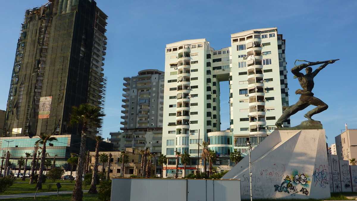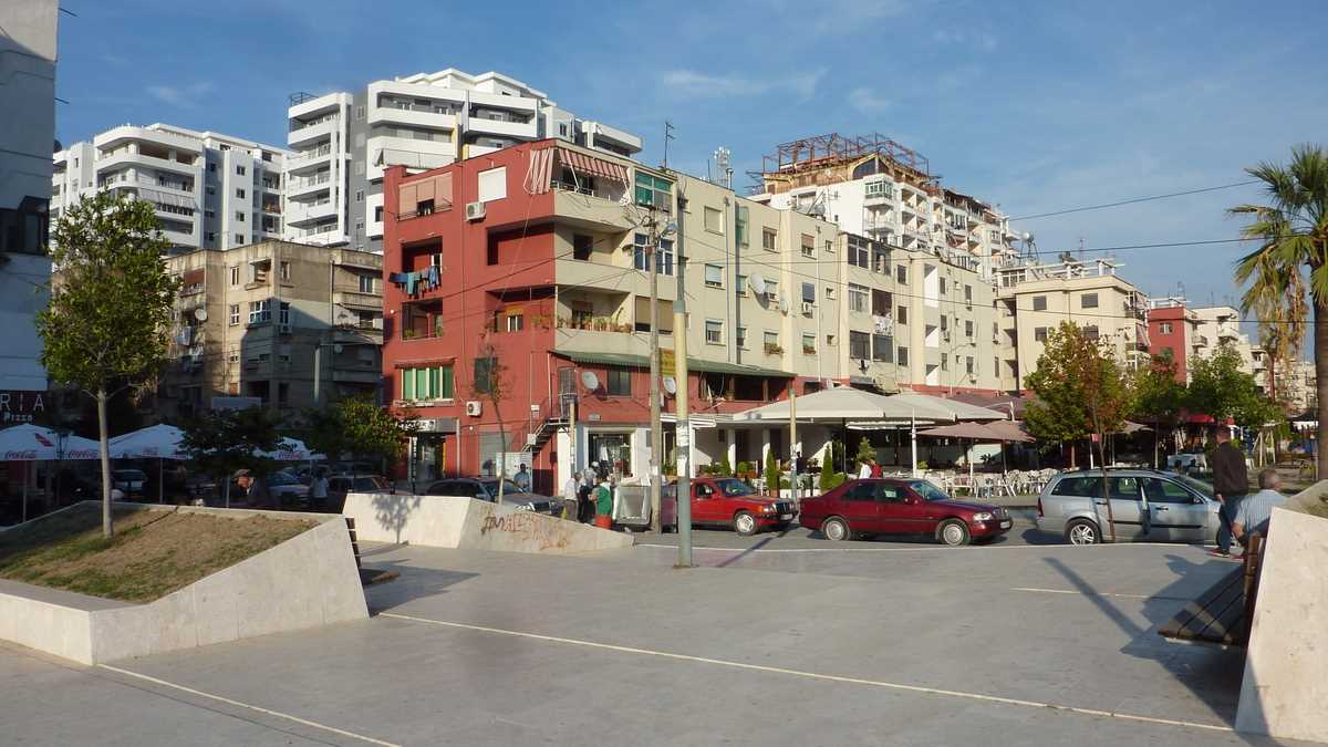 Dacă te îndepărtezi însă de centru, spre gara în care nu prea vin/pleacă trenuri, intri în realitatea binecunoscutului sindrom „Merge și așa!”: blocuri cu fațade scorojite, porțiuni de clădire cu geamuri sparte sau etaje aparent neterminate (nu-i clar dacă lucrările au fost abandonate recent sau construcția s-a degradat în timp), oameni amărîți care vînd pe trotuar, direct din roabă, haine la a doua mînă și încălțăminte la al doilea picior, statui în posturi exagerat de belicoase. Poziția individului din bronz cocoțat pe un soclu înconjurat de trei țevi de tun care arată cu mîna ceva, undeva în zare, este definitorie pentru perioada postcomunistă a Albaniei: „Încolo e Italia. Albanezi, vă ordon, emigrați!”.