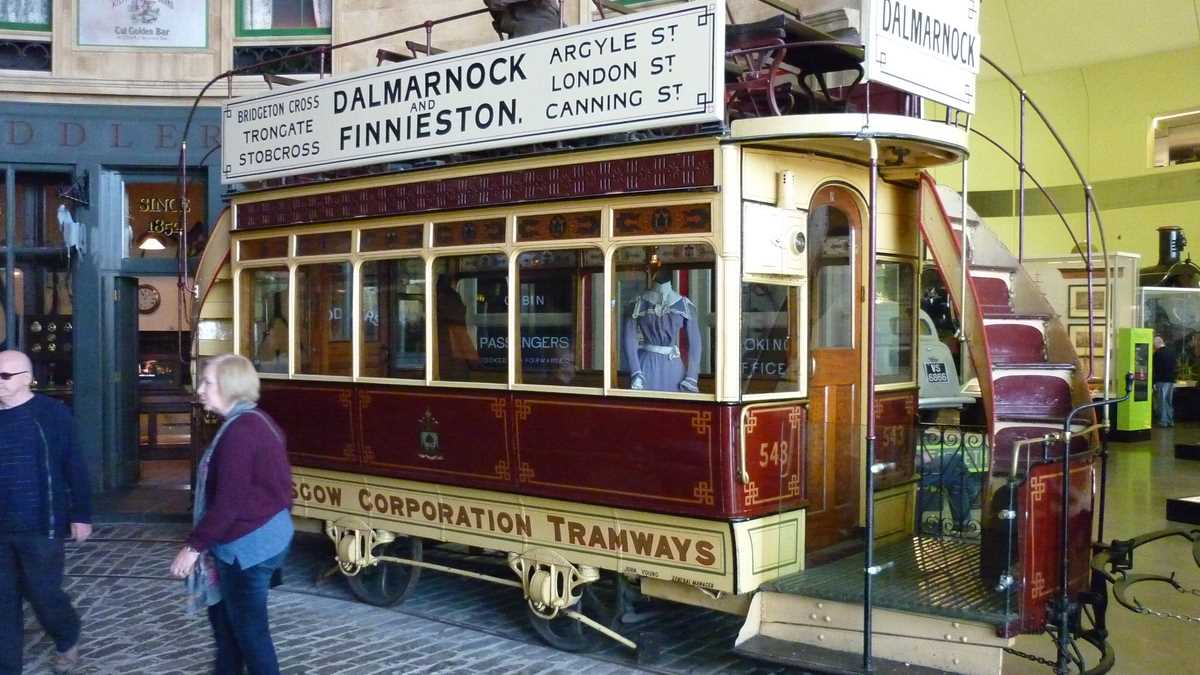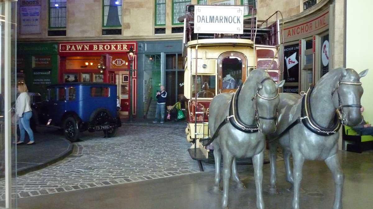 Și uite-așa, după vreo oră și ceva de la startul în traseu, driblam un domn îmbrăcat în costum național scoțian care-și plimba marțial cîinele și intram în primul muzeu al zilei. Riverside Museum e un spațiu expozițional foarte nou, deschis în iunie 2011, care a primit, în 2013, titlul de Muzeul European al Anului. Clădirea cu design futurist și acoperiș frînt ca o electrocardiogramă e, în principal, un muzeu al transportului și călătoriei (da, și în interior se circulă tot pe stînga). O imensă cutie cu jucării pentru copiii din oamenii mari: de la cea mai veche bicicletă din lume la o masivă locomotivă sud-africană, Riverside are reprezentanți ai cam tuturor mijloacelor de transport. Trăsuri, tramvaie, autobuze, machete de vase și avioane celebre, motociclete. Pe un perete sînt așezate, ca pe rafturile unui colecționar de mașinuțe, automobile de epocă; într-o aripă e recreată o stradă din Glasgow de acum o sută de ani (1895-1930): linie de tramvai, felinare, stație de metrou, prăvălii, amanet, pub-uri. Pauză de masă, în lift, lîngă un afiș cu meniul de Crăciun al restaurantului muzeului, servit între 7 și 23 decembrie: curcan la cuptor, vită în sos de vin, brînză de capră, plăcinte cu carne, budincă tradițională, brioșe, ciocolată albă, ceai/cafea, la doar 18,95 £ (trei feluri) sau 15,95 £ (două feluri). Dacă s-ar servi stil drive-in, în Rolls Royce-ul de la 1905, pun pariu că multă lume ar fi interesată.