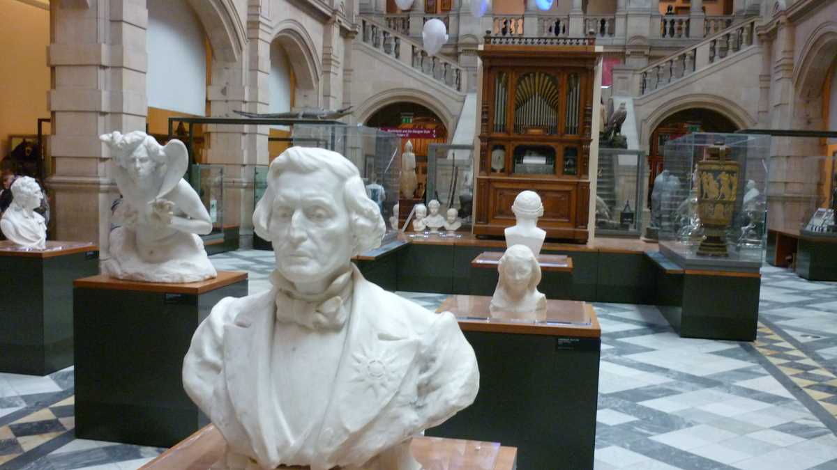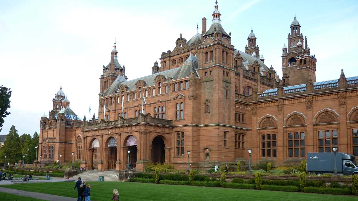 De la Riverside la Kelvingrove faci cam 15 minute pe jos. Atenție, nu poți traversa drumul expres care trece chiar prin fața muzeului Riverside: trebuie s-o iei pe sub pasarelă, pe pietonala de pe marginea rîului Kelvin (dacă ți se pare că sună familiar, nu ți se pare: numele cursului de apă e împrumutat și de baronul Kelvin, cel cu unitatea de măsură a temperaturii) care te duce pînă în parcul în care se află Kelvingrove Art Gallery and Museum. Deschis în 1901, într-o sobră clădire victoriană, care arată asta pînă la ultimul fir de nisip al mortarului dintre cărămizi, muzeul e plin cu obiecte de artă și artefacte din domenii foarte diverse.