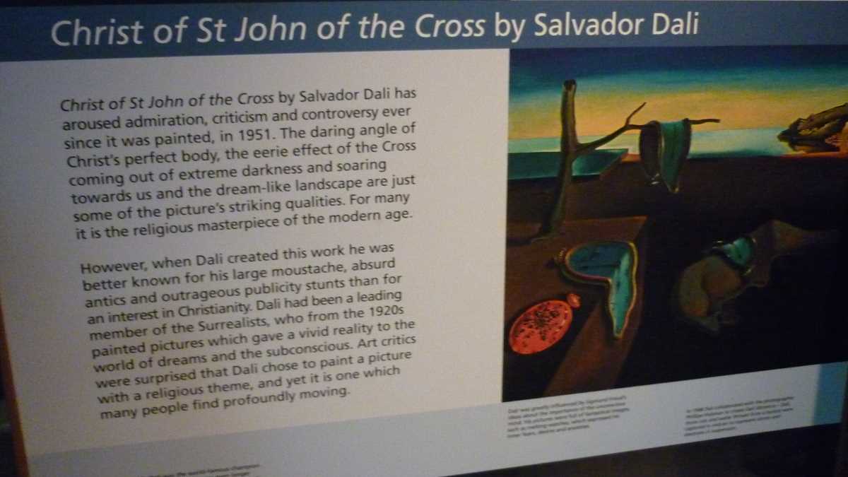 La etaj, într-o încăpere specială, se află cea mai importantă pictură din Kelvingrove: lucrarea lui Salvador Dali din 1951 Christ of St John of the Cross, o imagine întunecată, gravă, a unui trup pe cruce, neobișnuită pentru stilul nonconformist cu care artistul s-a consacrat. Alături, pot fi studiate tablouri de școală olandeză mai veche (Rubens, Rembrandt) sau ceva mai nouă (Van Gogh), un Picasso din perioada timpurie și impresioniști francezi, în special: Monet, Pissarro, Gaugain, Renoir, Cézanne, Matisse, Braque. Uimit de aglomerația de nume celebre din galerie, l-am întrebat pe un supraveghetor care ar fi cea mai valoroasă lucrare a muzeului. Sorry, mate, we’re not allowed to tell you that!, mi s-a răspuns, cu o privire suspicioasă, și mă și vedeam dînd explicații în camera de monitorizare, unde s-a remarcat, desigur, că am făcut o mulțime de poze-detaliu. Înclin să cred, totuși, că pe simeză sînt doar niște copii foarte reușite, originalele fiind păstrate la loc sigur.