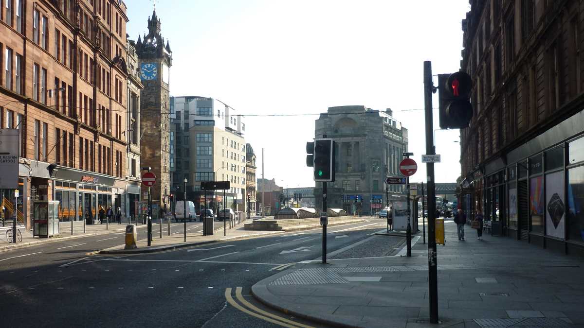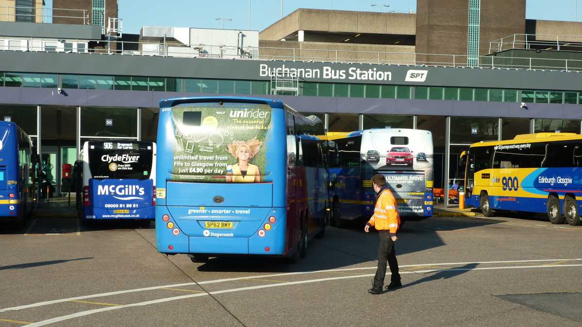La plecarea din Edinburgh am închiriat pînă la Glasgow, cu exorbitanta sumă de 6,50 lire, un autobuz National Express cu doi șoferi. Mă rog, fiind singurul pasager al cursei din dimineața aia de miercuri, cam asta a fost senzația pe tot parcursul celor 70 de kilometri rulați într-o oră pe prima bandă a autostrăzii M8, cea care și străbate Glasgow-ul de la nord-est la sud, ca un bulevard principal fără pietoni suspendat deasupra străzilor orașului.