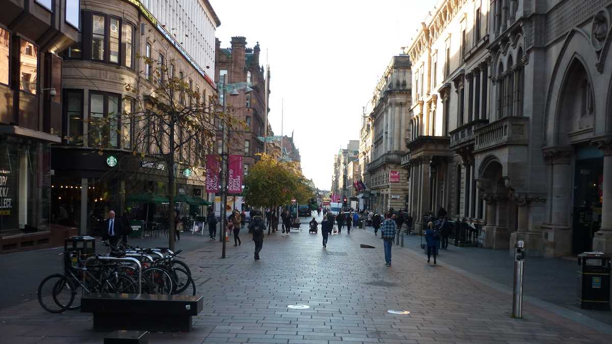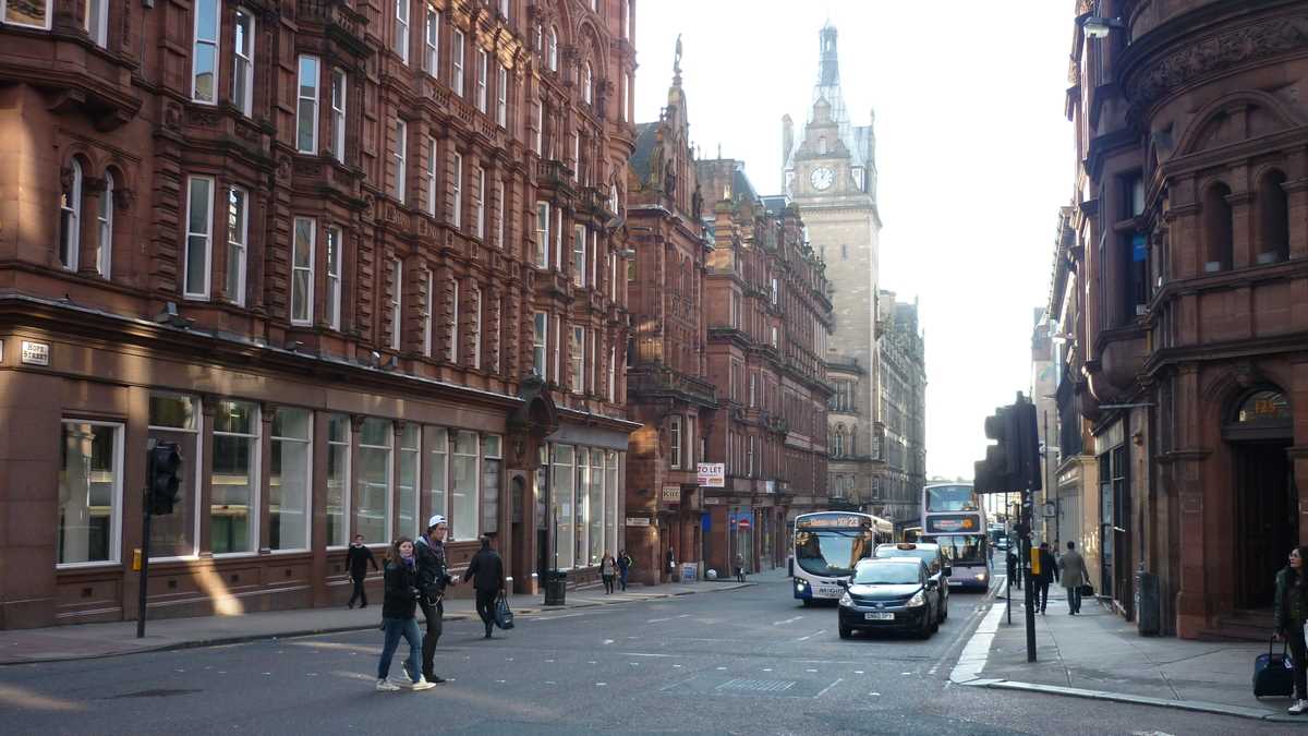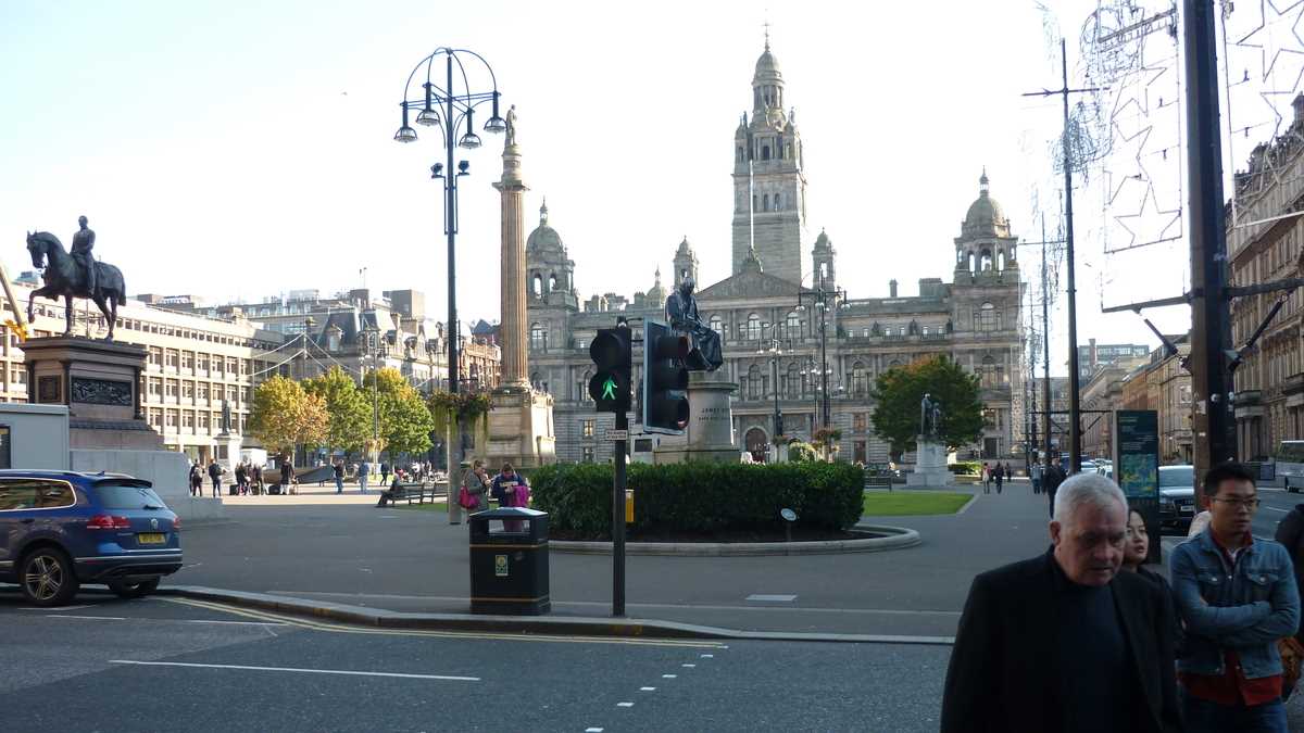 Avertizat de un prieten că Glasgow e capitala europeană a cuțitarilor și că, într-o singură zi, s-au vîndut 2.000 de bîte de baseball și nici o minge (cel mai probabil, în ziua derby-ului Rangers-Celtic; la fotbal, nu la baseball), am ieșit să mă plimb prin oraș, după-amiaza tîrziu, oarecum precaut. Cu o destinație clară, bere într-o cîrciumă rock din centru, dar cu o direcție variabilă, în funcție de ce îmi atrăgea atenția pe traseu. Am luat-o, deci, la vale pe High Street, am trecut prin intersecția Glasgow Cross de lîngă Tolbooth Clock Tower, inima fostei cetăți medievale, am hoinărit prin imensul parc Glasgow Green, în care m-am întîlnit doar cu pașnici alergători de seară, am încercat să intru în Winter Gardens, o seră cu plante exotice (închisă deja, din păcate, la 4,45 p.m.) și am luat un prim contact cu faleza rîului Clyde, traversat, de-a latul, de cîteva poduri relativ apropiate și, de-a lungul, de o mulțime de caiacuri. După berea din Solid Rock, m-am întors la hostel pe Buchanan Street și pietonalele adiacente, cartierul central de shopping al orașului, luminat la acea oră în toate culorile reclamelor. Țin să precizez că, pe durata acestui reportaj, nici un turist nu a fost rănit și nici o bîtă de baseball nu a fost folosită decît în scopul pentru care a fost creată.