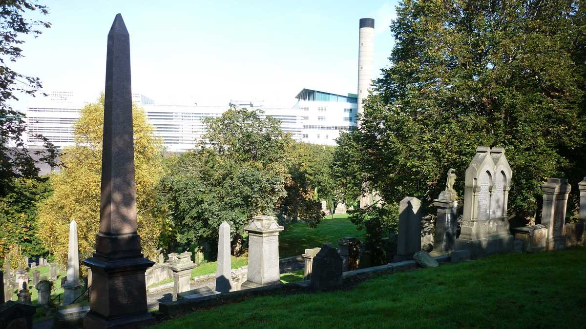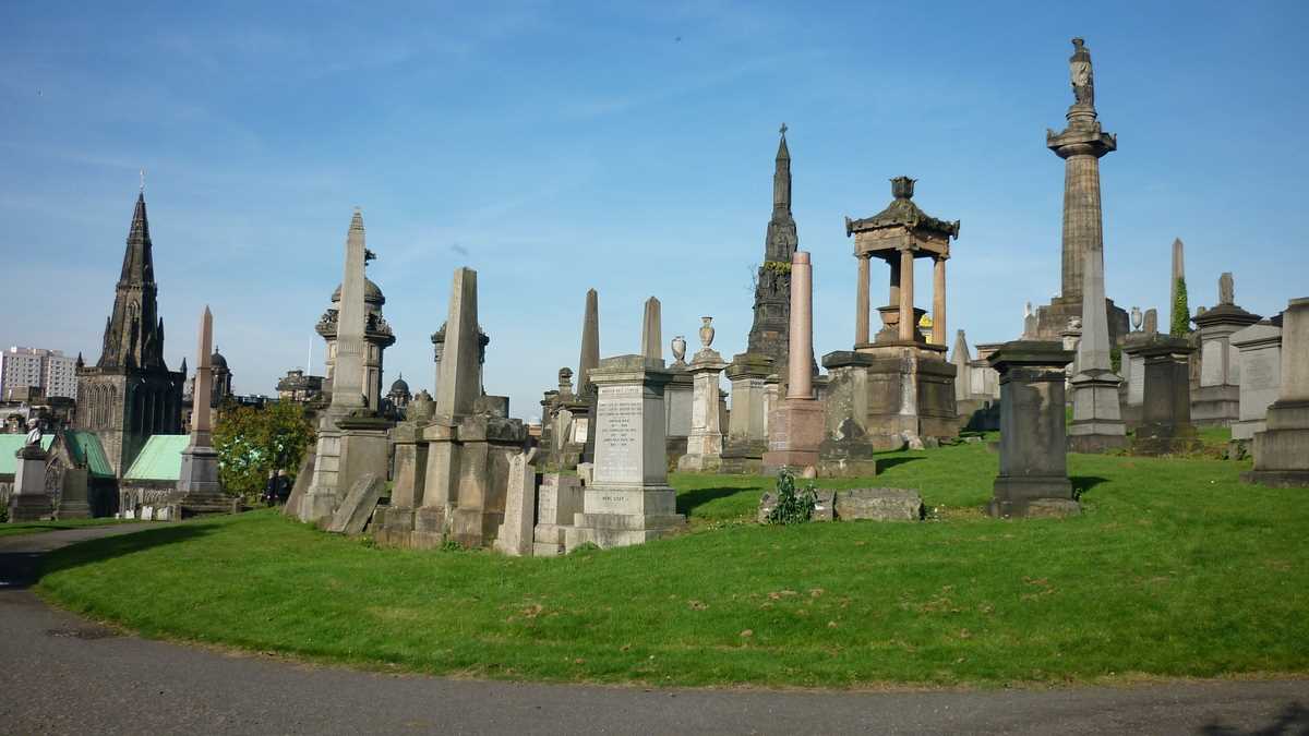 Coborît în Buchanan Bus Station, pierdut printre clădiri înalte, fără absolut nici o idee de orientare în teren, am întrebat un cuplu de polițiști (un el înalt și o ea bondoacă) de cel mai apropiat punct de informare turistică: era fix pe partea cealaltă a Glasgow Royal Concert Hall, în fața căreia ne aflam. Pe drumul spre Tartan Lodge, hostel-ul la care aveam rezervare, localizat pe hartă în partea de nord-est a orașului, la extremitatea fostului centru din perioada medievală, actualul cartier Merchant City, am trecut pe lîngă George Square, piața cu monumente din downtown, Universitatea Strathclyde, o zonă circulată de multă lume tînără, Glasgow Cathedral (pe o bancă de pe o alee mai retrasă de lîngă catedrală, am consumat meniul călătorului aflat permanent pe drumuri: cîteva sendvișuri cumpărate dintr-un Poundland și o bere Carling; cînd ai puțin timp de explorat un loc, nu-ți permiți să pierzi cîteva ore, plus cîteva zeci de lire, într-un restaurant, o pauză de masă de 15 minute, cît un picnic în parc, e arhisuficientă) și am urcat la Necropolis, City of the Dead, colina de lîngă catedrală unde sînt domiciliați definitiv foștii cetățeni de vază din perioada de maximă înflorire a Glasgow-ului, epoca victoriană. Din loc în loc, statui cocoțate pe pietre funerare privesc spre ce-a mai rămas din orașul pe care l-au construit odată titularii.