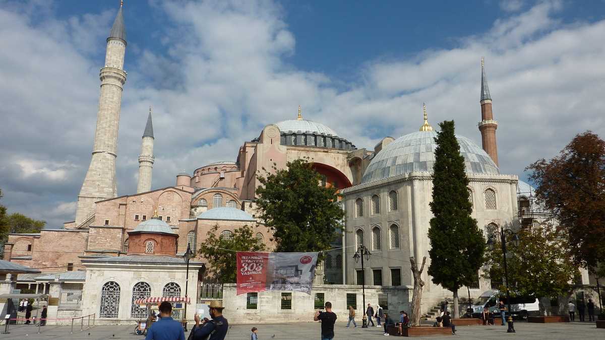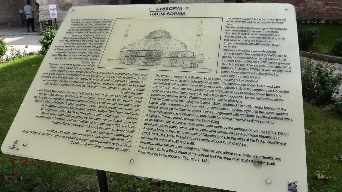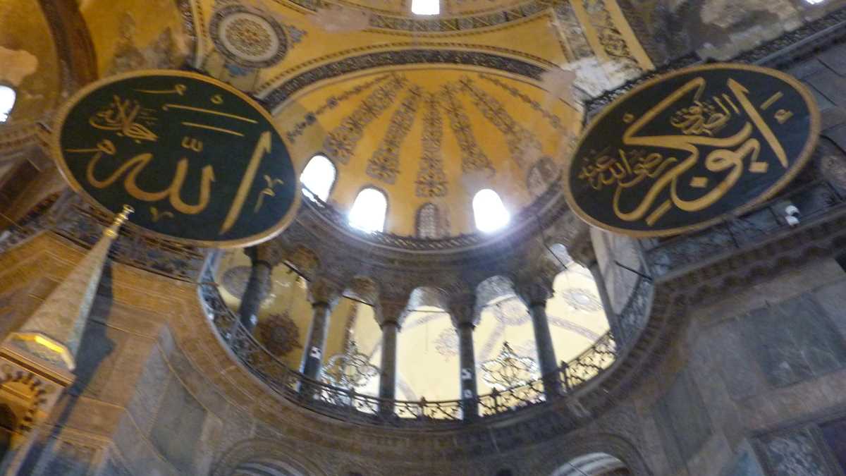 După vreun sfert de oră, eram iar pe platoul cu bănci și spații verzi din față și mă deplasam cîteva sute de metri mai încolo, la Hagia Sophia, în care ai acces abia după ce donezi 40 de lire la intrare și-ți pui bagajul pe bandă pentru control. O mie de ani cea mai mare catedrală creștină a lumii, aproape cinci sute de ani moschee și optzeci de ani muzeu – asta e istoria pe scurt a unei clădiri care, după vizitare, îți lasă un sentiment ciudat, la fel de amestecat ca și înfățișarea sa: structură de biserică cu cupolă și minarete de geamie, pereți interiori cu icoane, dar fără cruci, înlocuite cu versete din Coran.
