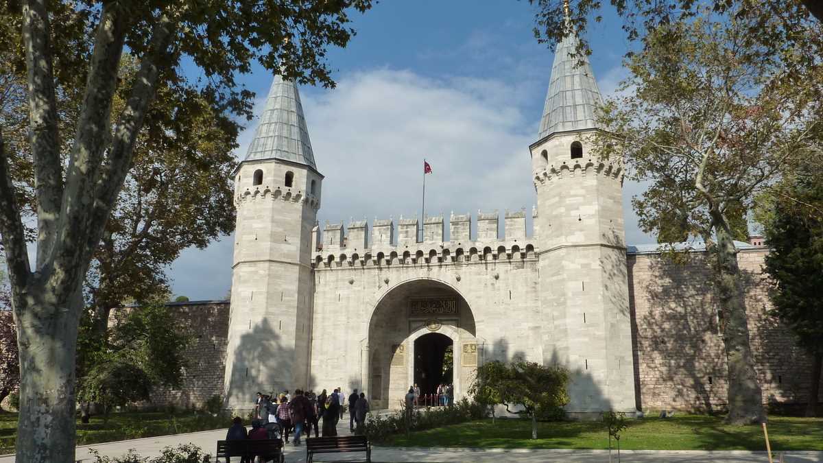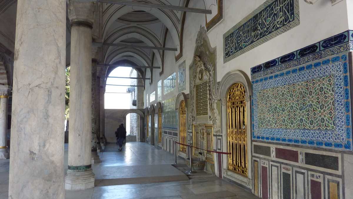 Nici cealaltă componentă a Sfintei Treimi turistice în Istanbul, Topkapı Sarayi, nu e departe: de la intrarea principală a parcului Gülhane, în vreo zece minute de urcat o alee pietruită, ești la Sublima Poartă. Prin care treci tot fără 40 de lire în buzunare (pentru Harem, trebuie să mai lași un peșcheș suplimentar de 10 lire). Construcție inițiată chiar de cuceritorul Constantinopolului, Mehmet al II-lea, în 1478, pe cel mai înalt loc al peninsulei, peste palatul bizantin sediu central al fostei capitale a Imperiului Roman de Răsărit, Topkapı a fost și casa, și biroul sultanilor, pentru aproape patru sute de ani, pînă la mutarea peste apă, în Dolmabahçe, de la mijlocul secolului al XIX-lea. M-am vînturat prin curți interioare, anexe, saloane, saraiuri, haremuri, esplanade și pavilioane cu vedere directă spre Cornul de Aur, Bosfor și Marea Marmara pînă m-am plictisit; îți trebuie cel puțin trei-patru ore ca să și pricepi ceva din ceea ce vezi, mai ales că, neexistînd ghid, doar supraveghetori, ai de citit o mulțime de plăcuțe explicative. De departe cel mai interesant artefact (pentru noi), sabia din oțel de Toledo dăruită de Papa Sixtus al IV-lea lui Ștefan cel Mare e arestată într-o vitrină din galeria armelor, lîngă cele ale tuturor ghiaurilor care au cutezat să conducă oști împotriva Porții. Chiar dacă nu este la fel de impresionantă ca cea încrustată cu pietre prețioase a lui Mehmet II Cuceritorul, sabia care a lăsat fără turban, cu tot cu cap, mii de trupe de ieniceri are o atracție aparte. Deși e strict interzis să faci poze, cu o mișcare de maestru, am reușit să păcălesc vigilența a trei paznici și să-i repatriez măcar imaginea.