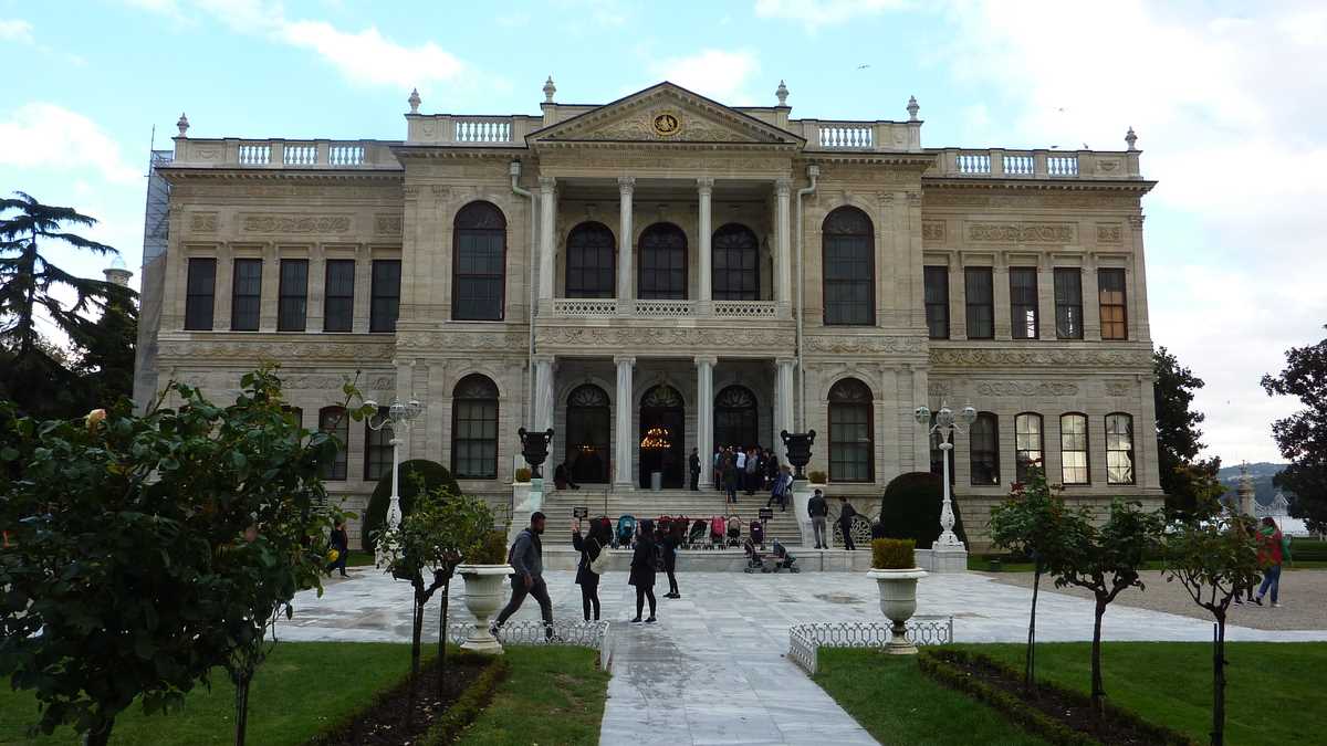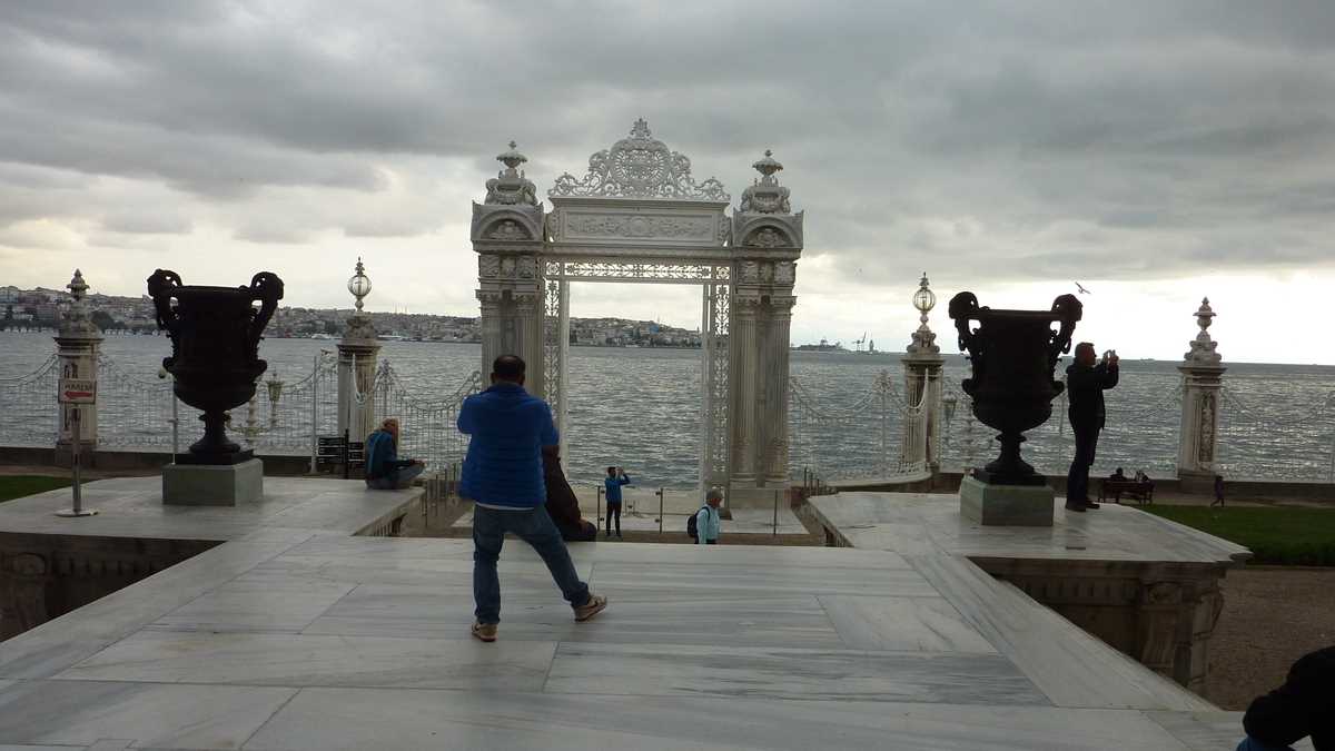 În prima zi, cazat în Beyoglu fiind, am pornit la explorat partea asta de Istanbul construită în pantă (unele străduțe-alei de acces sînt atît de abrupte încît au nevoie de trepte), pe coline, cu fața spre mare. Spre care m-am și îndreptat mai întîi, coborînd curios la țărmul Bosforului, pe care l-am parcurs, mai aproape sau mai departe de apă, de la Podul Galata la palatul-muzeu Dolmabahçe, reședința ultimilor sultani și a primului președinte, Mustafa Kemal Atatürk. După ce lași la intrare 40 de lire, adică aproximativ 10 euro (definitiv), și, eventual, ca mine, vreo sticlă de vin (temporar, confiscată pînă la ieșire de filtrele de securitate ca la aeroport), ți se dă voie să treci, pe sub o poartă imperială, în grădina cu statui și fîntîni arteziene de pe malul mării și din fața palatului. Înăuntru nu poți să mai umbli teleleu, ca pe-afară, ci doar însoțit de ghida care explică, într-o engleză decentă, care-i faza cu luxul care te înconjoară. Locuită doar vreo opt decenii, din 1856 pînă în 1938, la moartea lui Atatürk, expoziția asta impresionantă de coloane, bolte și scări de marmură, covoare rare, bijuterii și porțelanuri de colecție a costat enorm, împingînd imperiul spre faliment, prețul calculîndu-se, la momentul implementării proiectului, în zeci de tone de aur. Sau de cristal: cel mai mare candelabru din lume, cel din sala de ceremonii, are peste patru tone.