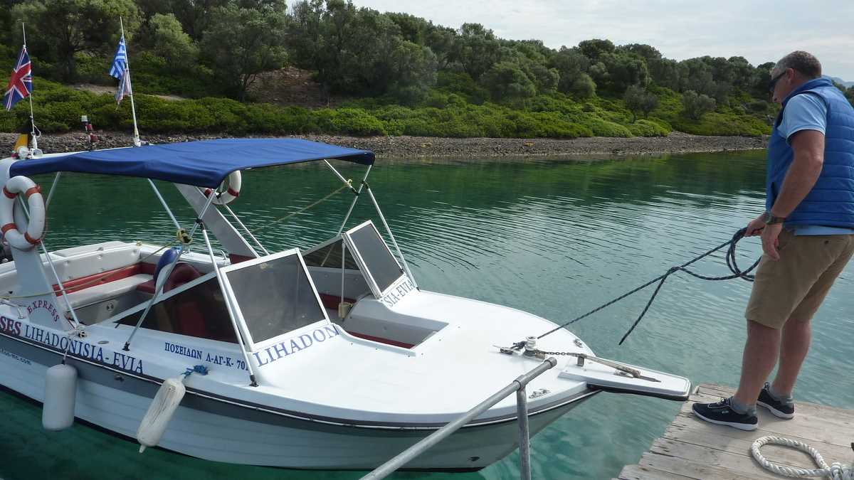 Prima recomandare primită de la orice localnic este să te îmbarci într-un taxi boat și să faci o scurtă croazieră în jurul micului arhipelag de insulițe Lichadonisia al golfului, aflat la cîteva mile marine de port. Pentru o bancnotă de 20 de euro, bătrînul lup de mare Dimitris te ia dimineața la bordul șalupei “Poseidon”, te lasă pe o plajă sălbatică populată de cîteva umbreluțe din stuf și un beach bar și vine să te ia seara. Sau cînd îl suni că te-ai plictisit. Pe drum pînă acolo, Dimitris intră în rolul Povestitorului, prezentînd chestiile cele mai interesante ale croazierei: insula de origine vulcanică cu țărmuri stîncoase colorate, ruine de clădiri și far dezafectat Stroggyli, epava unui vas german de aprovizionare din cel de-al doilea război mondial (legenda spune că a fost scufundat de rezistența greacă și că nemții, drept represalii, au executat cinci civili pentru fiecare soldat ucis în atentat), colonia de foci stabilită aici, în limpedea apă verde-turcoaz prin care peștii se văd înotînd ca într-un acvariu.