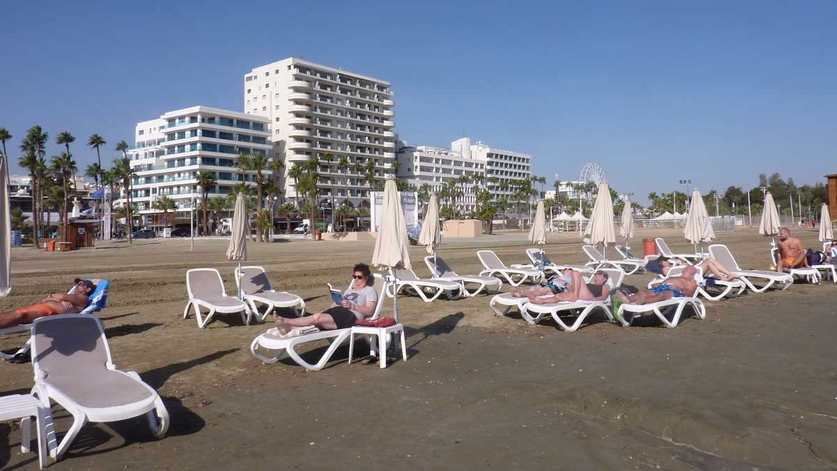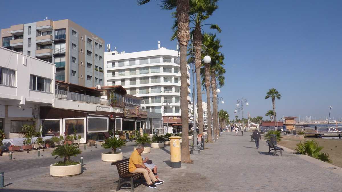 Majoritatea turiștilor pot fi întîlniți, deci, pe faleza cu palmieri paralelă cu plaja blue flag Finikoudes, porțiunea de la Larnaka Castle la roata parcului de distracții de peste drum de marina, portul de agrement cel mai mare al Ciprului, unde zeci de iahturi aliniate la chei își așteaptă proprietarii plecați cine știe pe unde. În contrast cu orașul vechi, ascuns după clădirile noi ale bulevardului falezei, în care zidurile colorate de graffiti, unele chiar reușite, sînt canavaua unei arte stradale care-ți mai ia ochii de la tencuiala coșcovită sau maidanele pline de moloz, aici, lîngă plajă, totul este curat, zugrăvit în alb și presărat cu spații verzi foarte îngrijite. Blocurile de apartamente de lux sau hotelurile înșirate cu balcoane spre mare și restaurante, baruri, cafenele, gelaterii, cofetării, la parter, sau revărsate în față, pe trotuarul lat, dau zonei o atmosferă exclusivistă. Magazinele cu haine, pantofi sau suveniruri au fost exilate pe străzile din spate; pînă și Primăria și-a luat cu chirie niște birouri la etajele unei clădiri cu aspect hotelier, la parterul căreia McDo și KFC prăjesc chiftele pentru turiștii care, după un Big Mac sau un Chicken Bucket, traversează strada ca să urce în Love Buses, autobuzele galben-roșu cu platformă decapotată pentru sightseeing.