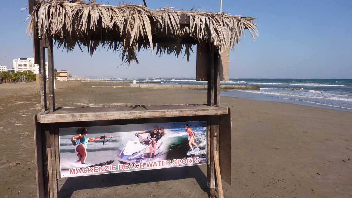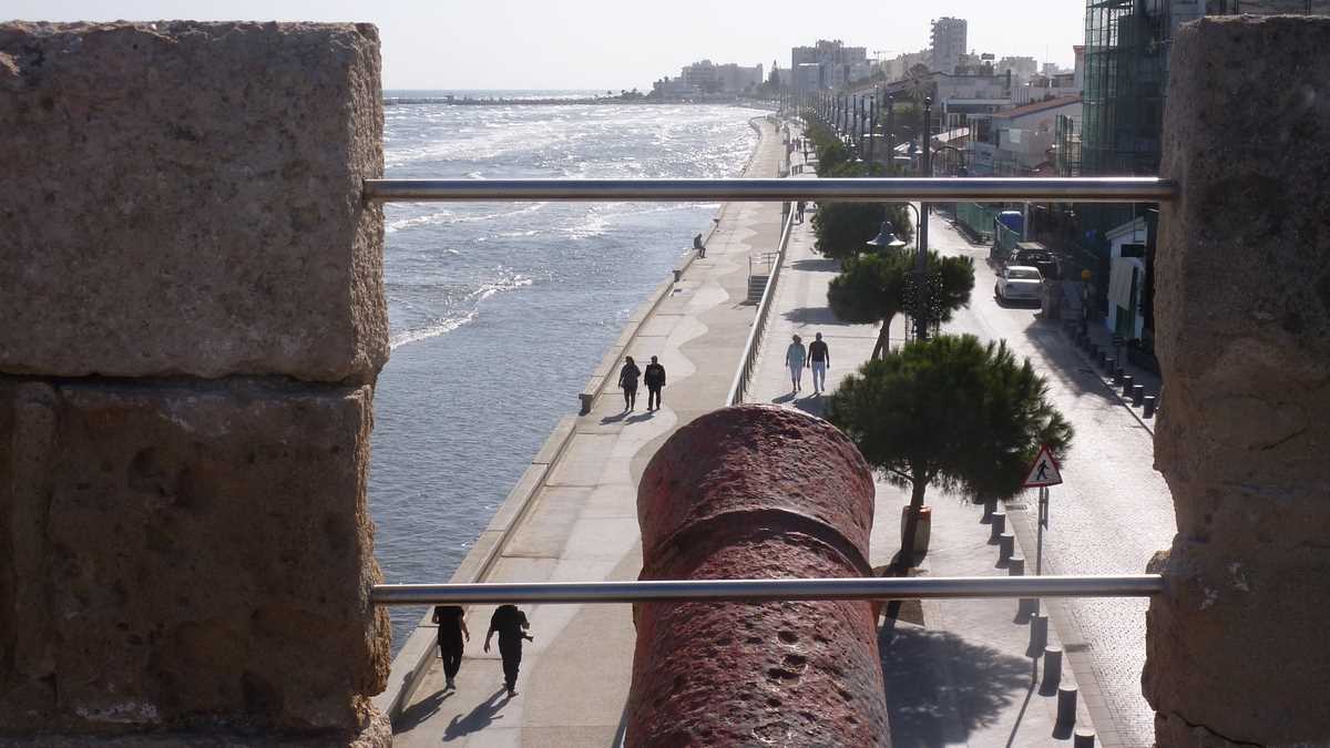 Fortul-muzeu desparte două lumi: de la zona de patru și cinci stele a bulevardului dichisit se face brusc trecerea, ca de la oraș la sat, spre cazările de două-trei stele de pe marginea promenadei amenajate în ciment și piatră, pe și deasupra țărmului, care continuă, în prelungirea falezei Finikoudes, pînă la portul pescăresc și mini-piața de pește de la intrarea pe plaja Mackenzie. Aici, cam la fiecare sfert de oră, avioanele decolează sau aterizează pe deasupra capetelor spectatorilor de circumstanță, pista aeroportului fiind gard în gard cu capătul plajei. Care, la sfîrșit de noiembrie, are o mulțime de șezlonguri abandonate și surprinzător de multă lume în apa caldă și cu valuri mari.