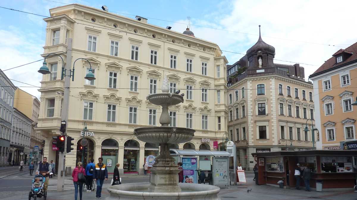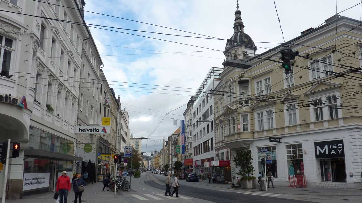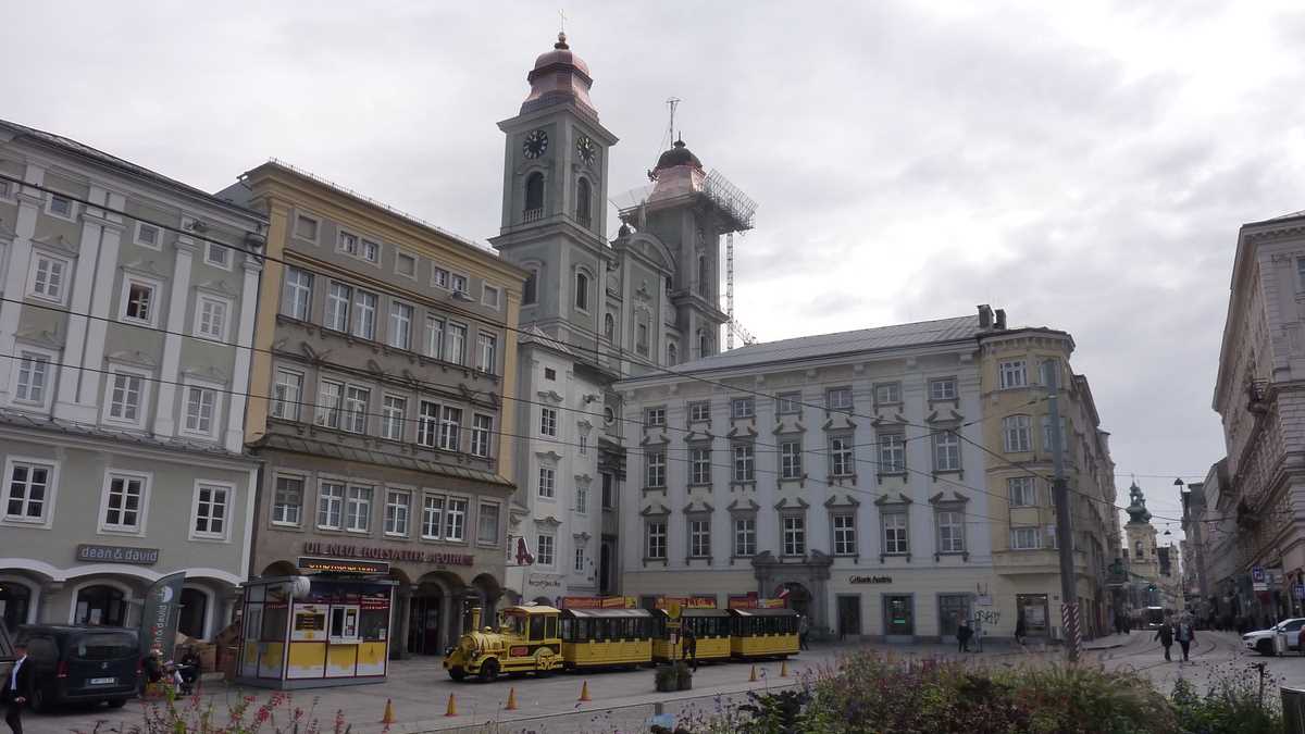 Bulevardul de la gară care se unește cu podul peste Dunăre trece pe lîngă multe dintre clădirile importante ale orașului. Din părculețul din fața Musiktheater, moderna Operă inaugurată în 2013, pînă în Hauptplatz, larga piață centrală din jurul columnei baroce (accesorizată momentan cu schelele restaurării) dedicată Sfintei Treimi, un pieton cu cameră foto poate prinde în obiectiv, pe lîngă Alter Dom și Mariendom, vechea și noua catedrală, multe alte construcții cu arhitectură interesantă, și mai sobre, și mai moderne. Pentru leneși, există tractorașul-trenuleț galben al turului de sightseeing. Care, în afara sezonului călătoriilor pe apă, nu prea are clienți, majoritatea turiștilor de Linz fiind cei care fac escală aici, nu cu avionul sau cu trenul, ci cu vaporul.